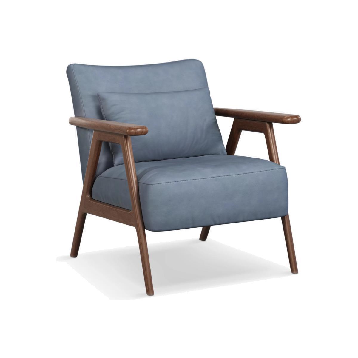 This armchair is a great choice for adding a refined yet approachable touch to a variety of interiors. I love the juxtaposition of the soft, muted leather with the rich, dark wood frame, which creates a sophisticated but timeless look. It works particularly well in mid-century, Scandinavian, or contemporary schemes where clean lines and natural materials are key. For styling tips, consider pairing it with textured cushions or a patterned throw to soften the overall look. It also pairs beautifully with a neutral rug and modern or vintage side tables, making it versatile enough to act as a statement piece or a comfy occasional seat. Its compact size makes it a practical addition for living rooms, bedrooms, or home offices where style and comfort are both priorities.