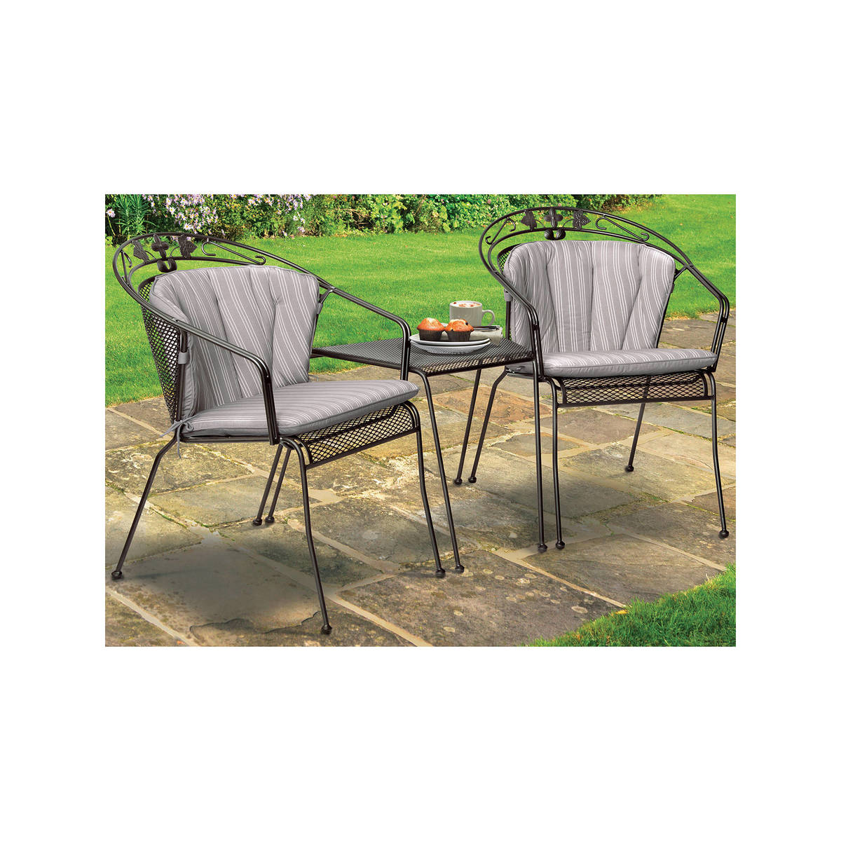 This angled companion table has a mesh top and sturdy steel legs. It is designed to be used alone or used 2 x round back chairs to create a love seat arrangement. The sturdy steel frame is treated with a thermoguard coating, giving it a tough all-weather finish.