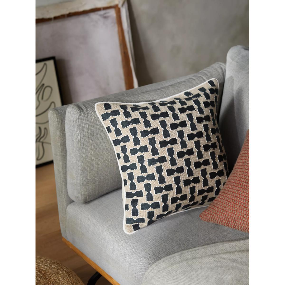I love this cushion for its bold geometric pattern and sunny colour palette, which can instantly lift a neutral sofa or armchair. It works well in contemporary and mid-century inspired interiors, but also adds a fun, modern touch to eclectic or even traditional settings. When styling, consider pairing it with solid-colour cushions in complementary tones to create a layered, curated look. Practical tip: use it as a statement piece in a layered arrangement, and opt for a soft, durable fabric that’s comfortable for everyday use. It’s a versatile piece that brings personality and brightness to any space.