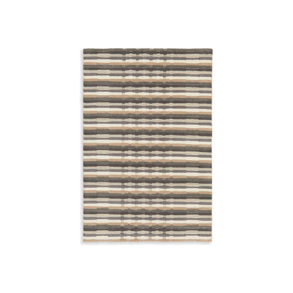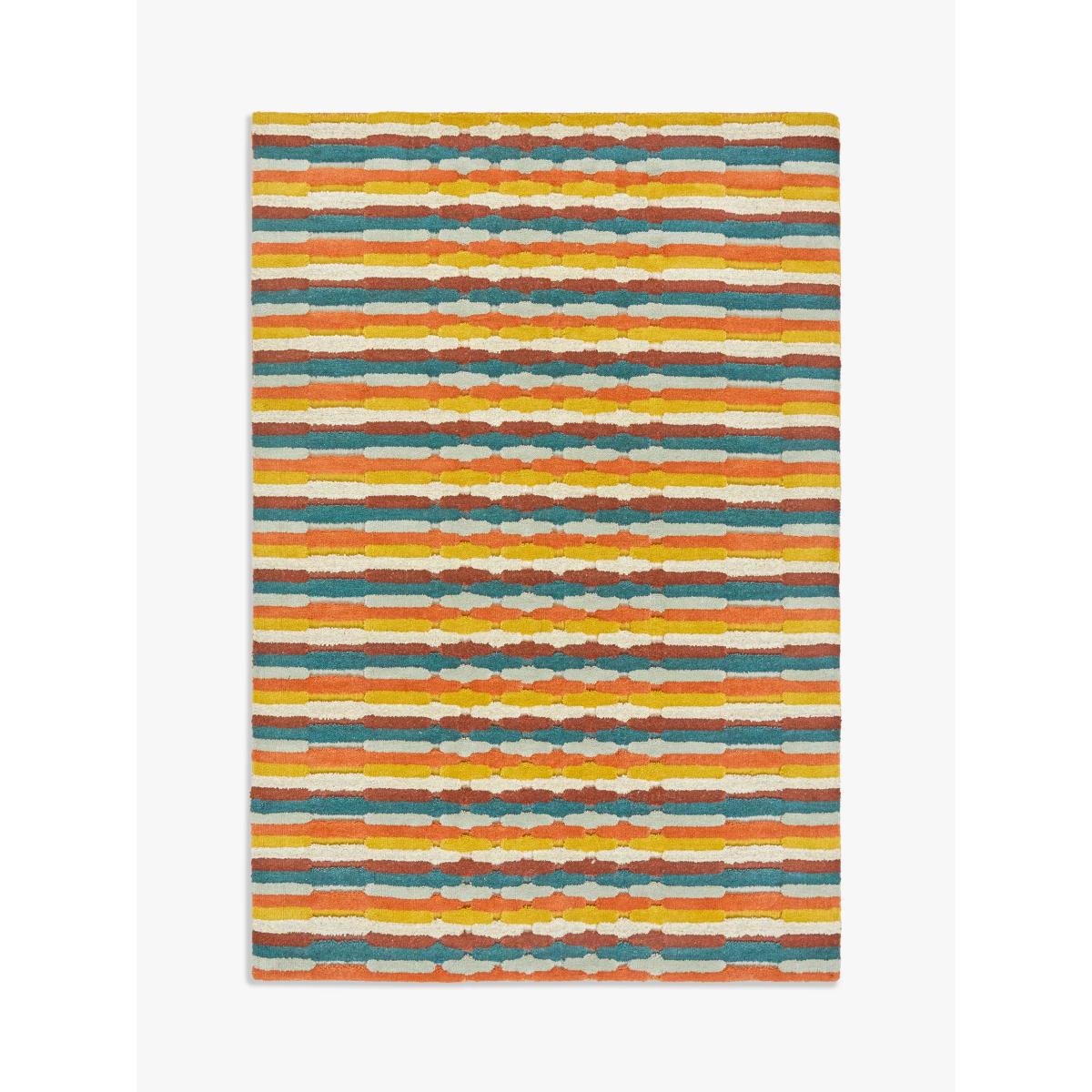 In a sharp, striped design this rug is created from 100% wool, offering the perfect blend of softness and strength. This rug is loomed by hand, a traditional shuttle process in which material is laced together to create a strong and durable weave. About your new rug We recommend John Lewis & Partners Rug Hold Underlay. It prevents your rug from moving underfoot and protects against colour transfer to the floor Natural fibres may shed. This will reduce over time and will not affect your rug's performance. Vacuum clean regularly to reduce the shedding. When vacuuming your rug, use suction only. Rotating brushes may damage the fibres Blot any spills with a clean, dry cloth. Do not rub or use harsh detergents. Latex backed therefore not suitable for underfloor heating. Specialist cleaning recommended.