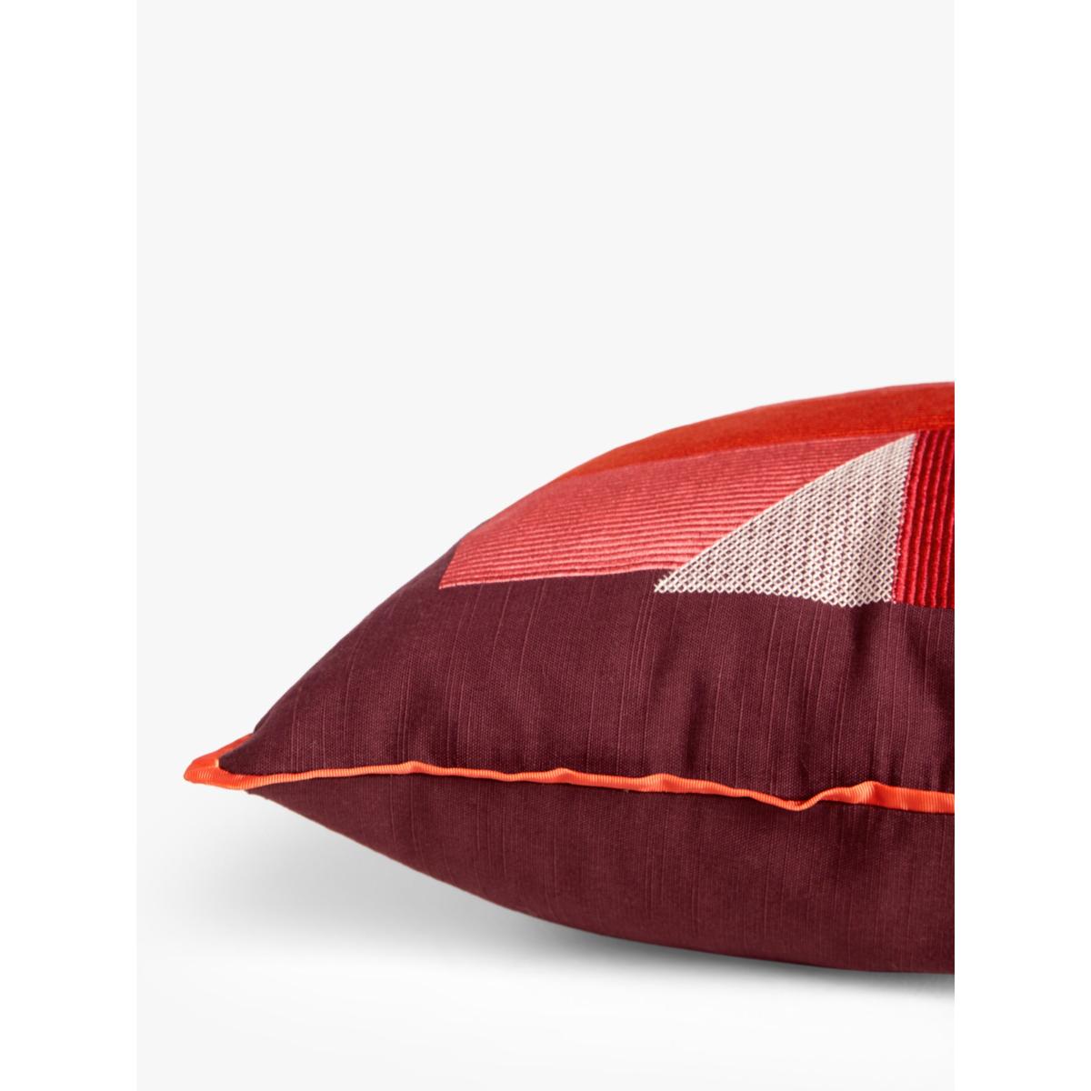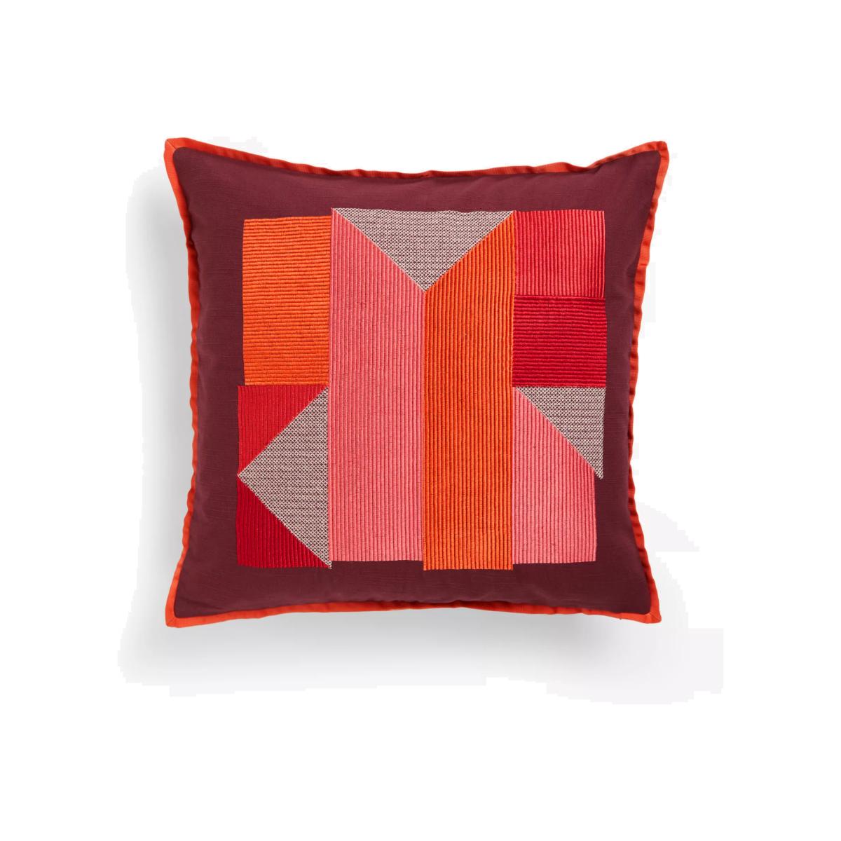 An abstract, embroidered geometric in a range of vibrant colours to brighten up your sofa.