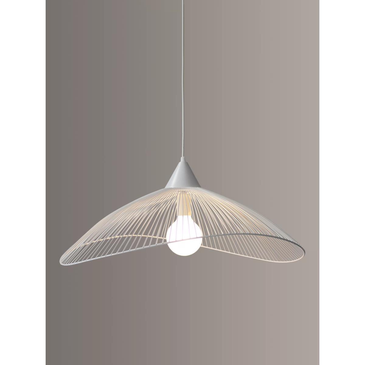 This distinctive, sculptural pendant is an adaptable style in both living and dining spaces, as well as bedrooms. It's made from metal threads with a fluid, uneven shape and light spills out from the centre to create an eye-catching shadow on nearby walls.