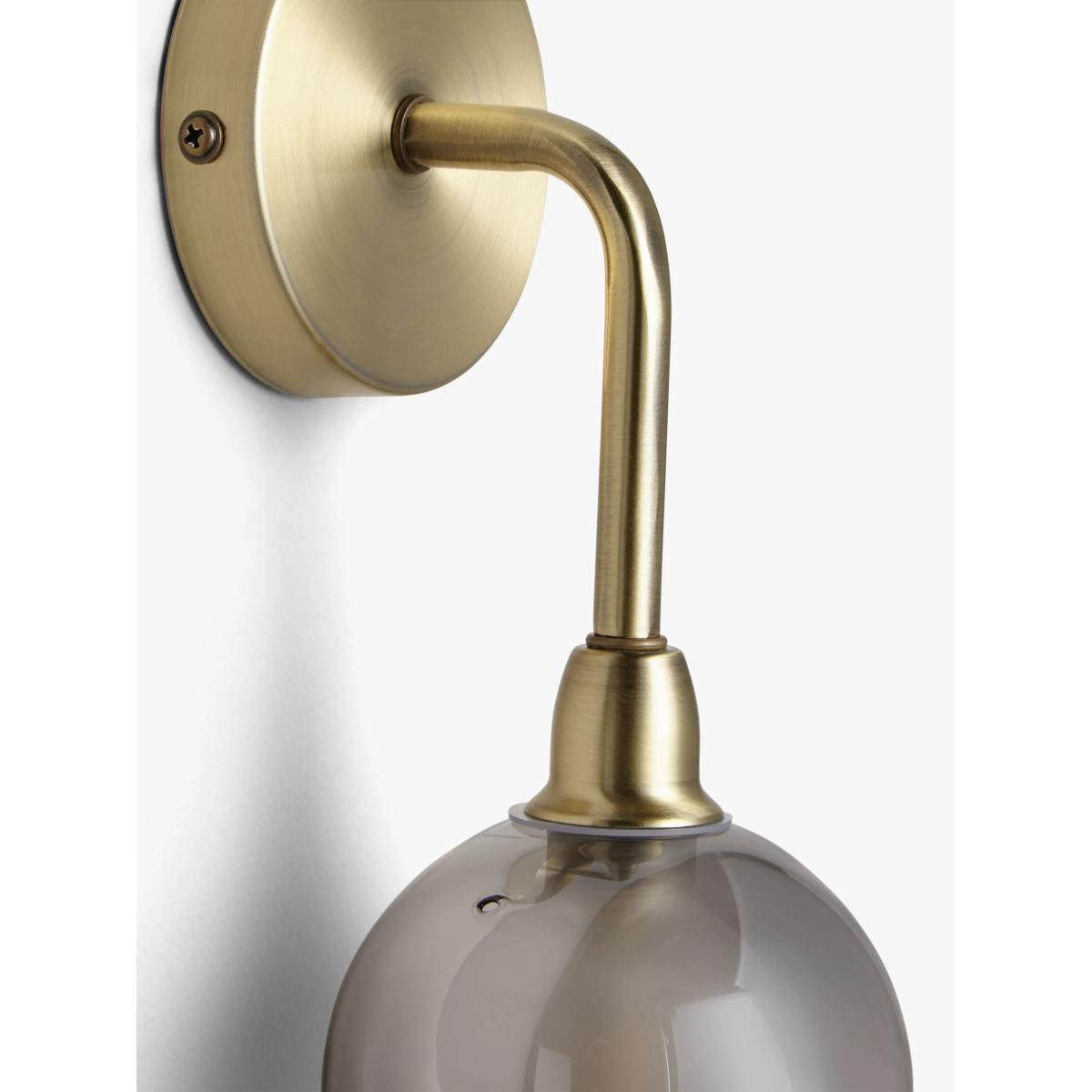 Sleek and understated, our single arm Huxley wall light is ideal for illuminating hallways or installing on either side of your bed. The antique finished metal gives the design a nostalgic, Art-Deco inspired feel, and teamed with a smoked glass shade, it provides an ambient wash of light.