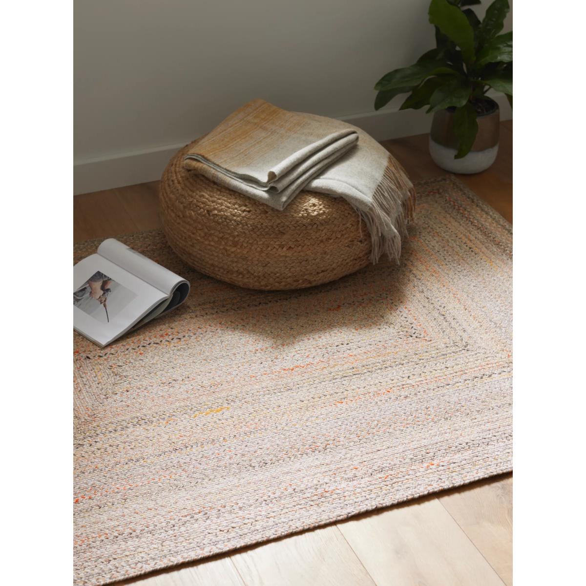 In a charming, braided style that adds texture and interested, this versatile rug is made using 510 recycled plastic bottles. With a flat finish making this rug ideal for busy, high-traffic rooms, the materials in this rug have been woven together by hand to create a strong construction. Made using recycled materials, helping us to reduce our impact on the planet, this rug is made from 510 plastic bottles. Worth knowing: Due to the nature of the material and weave of this rug each one is unique, so yours may look slightly different to the one pictured. About your new rug We recommend. It prevents your rug from moving underfoot and protects against colour transfer to the floor Minimal pile shedding may occur. This will reduce over time, and shouldn't affect your rug's lifespan or performance Vacuum occasionally. When vacuuming your rug, use suction only. Rotating brushes may damage your rug Blot any spills with a clean, dry cloth. Do not rub. Spot clean using a mild soap solution Textile backed Specialist cleaning recommended This rug can be used both indoors and outdoors, when using outdoors please avoid leaving the rug outside during long periods of time in poor weather allowing the rug to become saturated with water as this will cause the rug to deteriorate. When the rug is not in use please ensure the rug is clean and fully dry and store rolled up carefully in a warm and dry location.