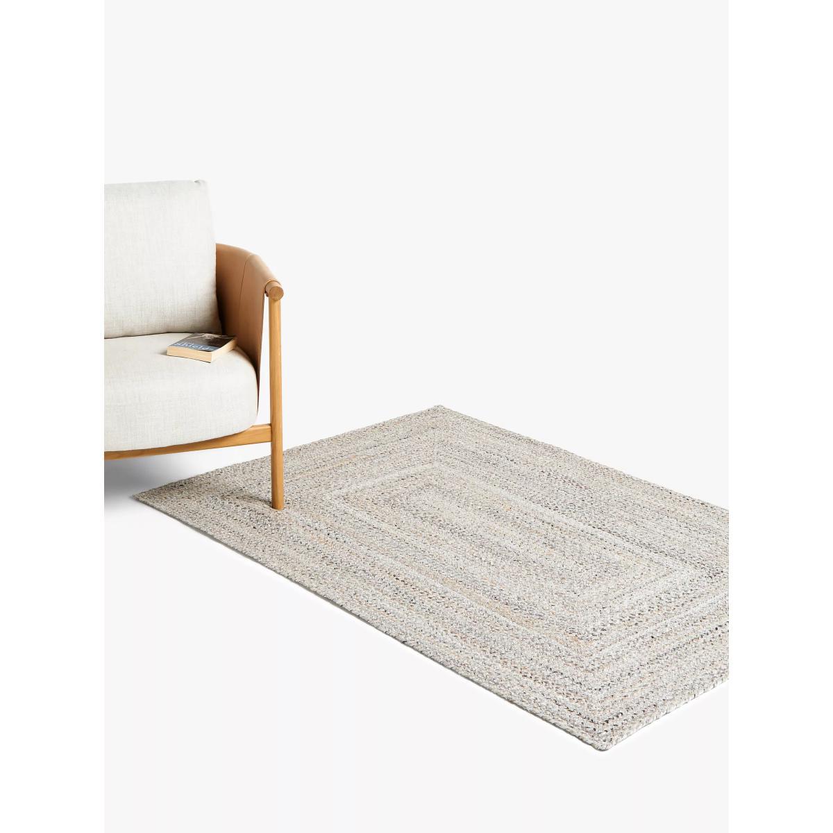 With a subtly, textured design, our versatile Braided Rug is made using recycled plastic from 510 bottles for enduring durability. This rug can be used both indoors and outdoors, when using outdoors please avoid leaving the rug outside during long periods of time in poor weather allowing the rug to become saturated with water as this will cause the rug to deteriorate. When the rug is not in use please ensure the rug is clean and fully dry and store rolled up carefully in a warm and dry location. With a flat finish making this rug ideal for busy, high-traffic rooms, the materials in this rug have been woven together by hand to create a strong construction. About your new rug We recommend John Lewis & Partners Rug Hold Underlay. It prevents your rug from moving underfoot and protects against colour transfer to the floor Minimal pile shedding may occur. This will reduce over time, and shouldn't affect your rug's lifespan or performance Vacuum occasionally. When vacuuming your rug, use suction only. Rotating brushes may damage your rug Blot any spills with a clean, dry cloth. Do not rub. Spot clean using a mild soap solution Textile backed Specalist cleaning recommended