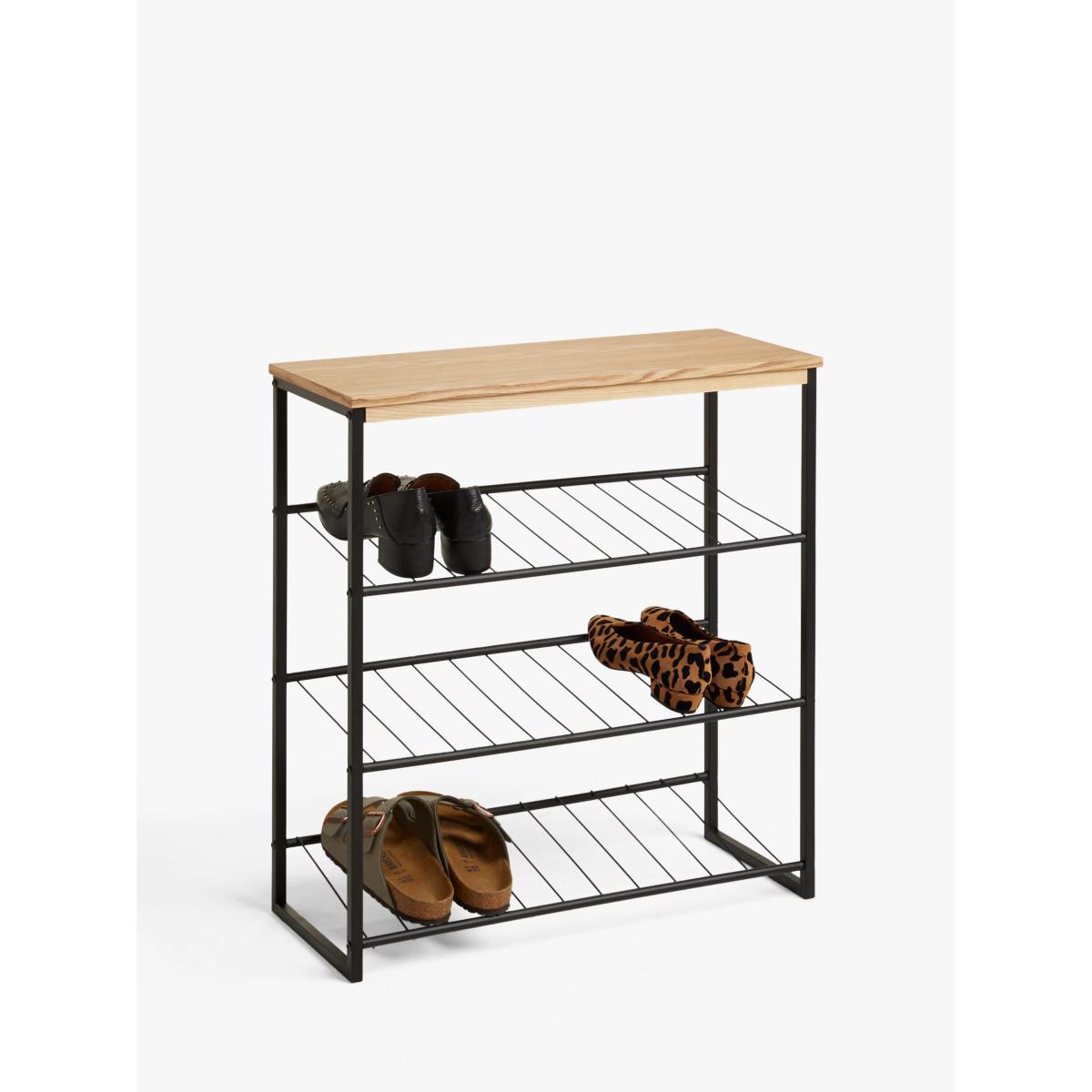 John Lewis & Partners Iron and ash Veneer Shoe Rack, 3 Tier