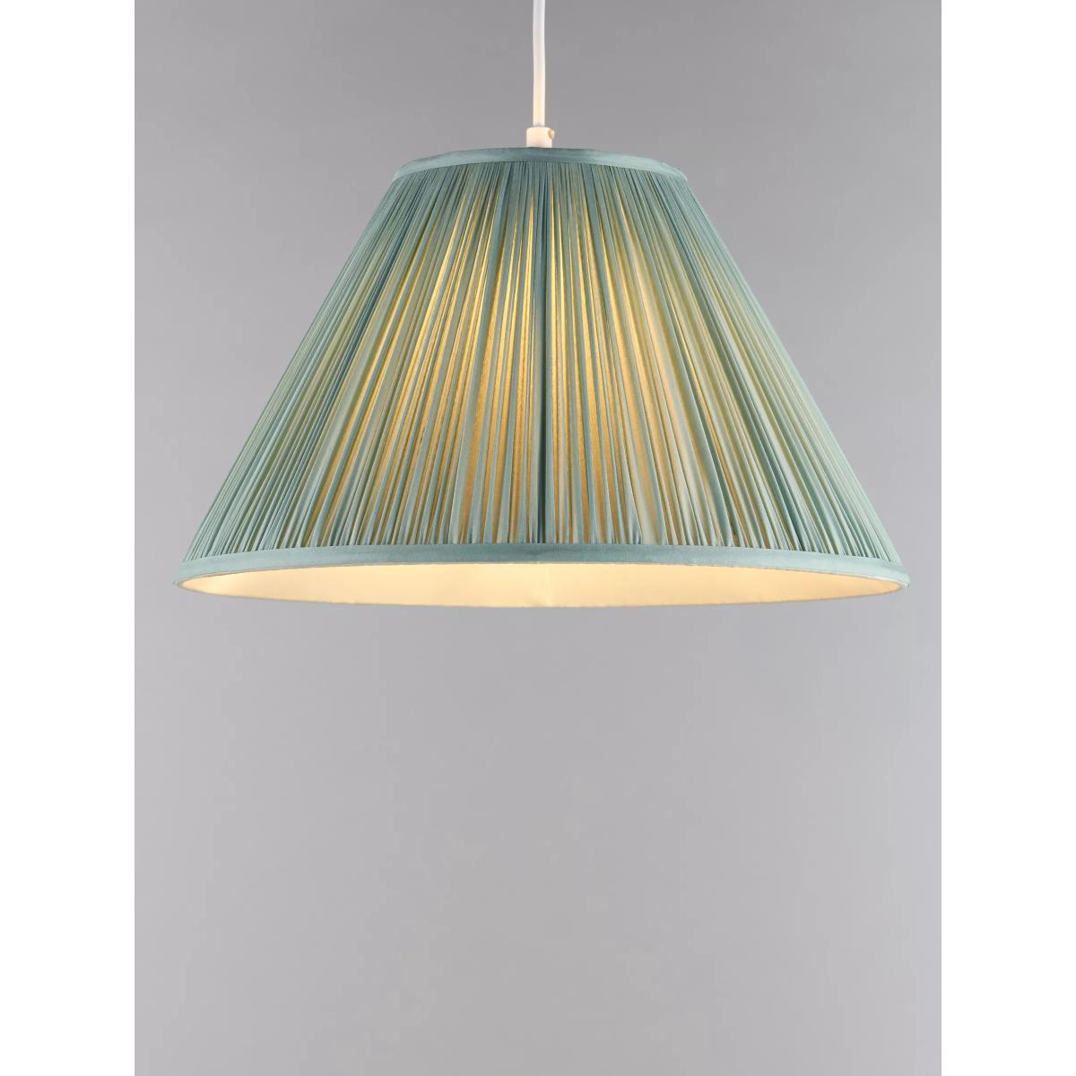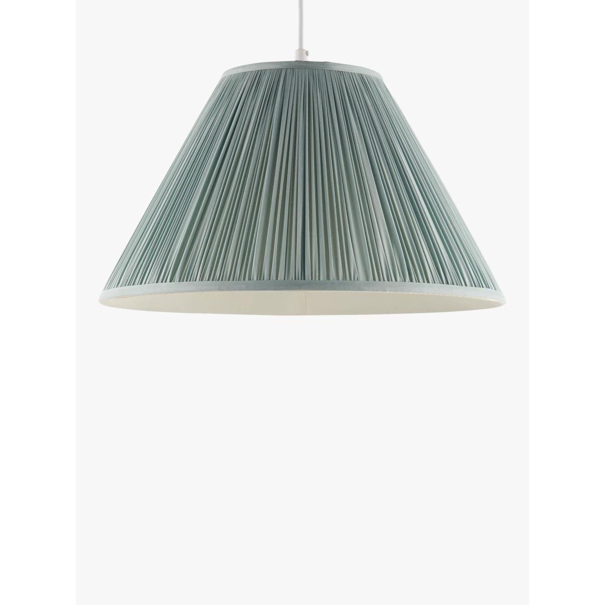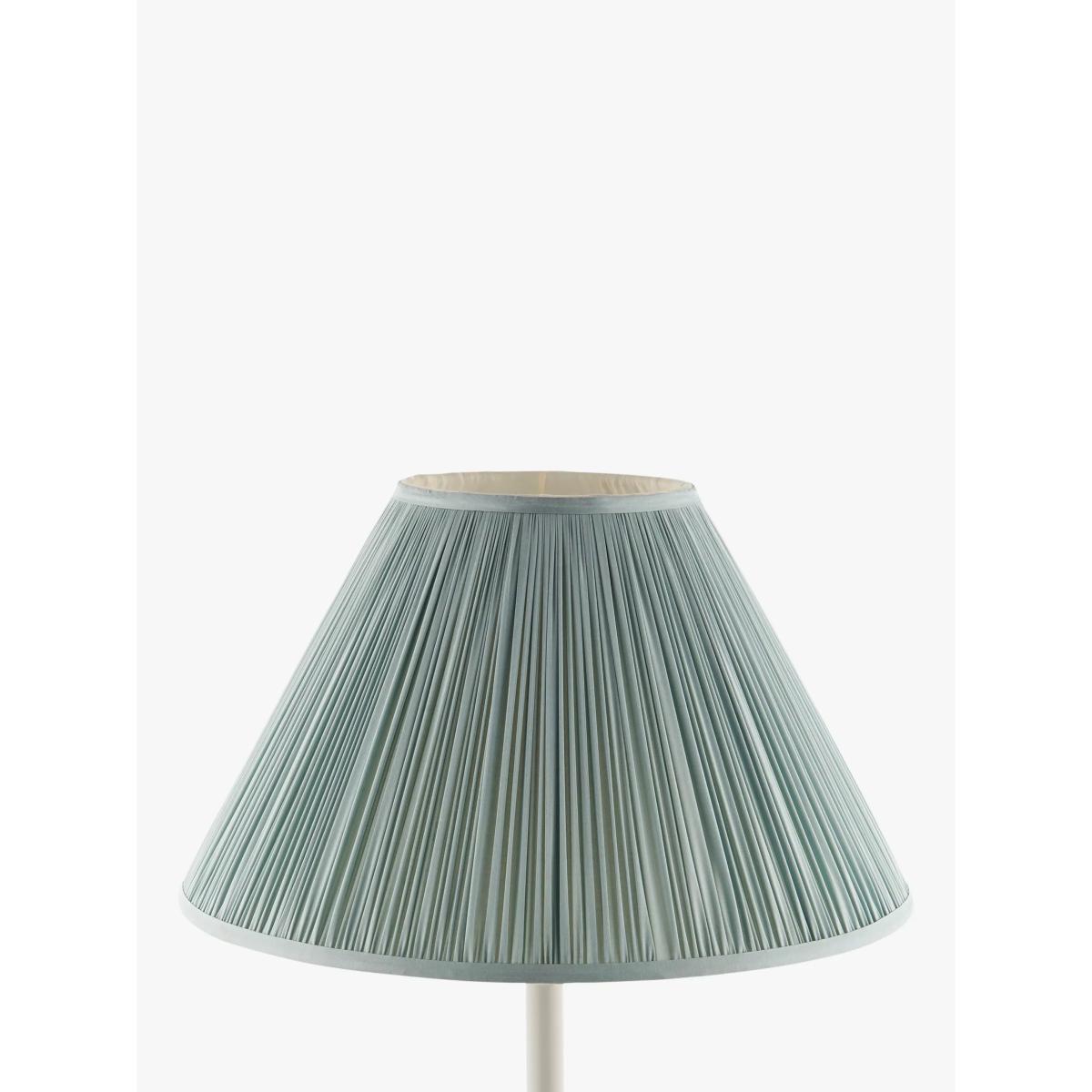We've made this beautiful lampshade from Dupioni silk. It has a timeless, tapered shape and features delicate, mushroom-pleat detail that enhances its traditional style. Easy to fit, it will draw the eye and especially complement period features in your home. The diameter refers to the lower measurement of the shade. How it's made This high-quality silk derives from a plain weave, where two cocoons become naturally adjoined and form a medium-weight, tactile silk. It's a natural fibre, so you may see some irregularities in its texture. This distinctive quality gives each lampshade a unique look and highlights its closely woven production. Good to know Our straight-sided, or drum lampshades are well-paired with modern lamp bases, while tapered lampshades work well with classic style bases. You can shop our range of lamp bases here