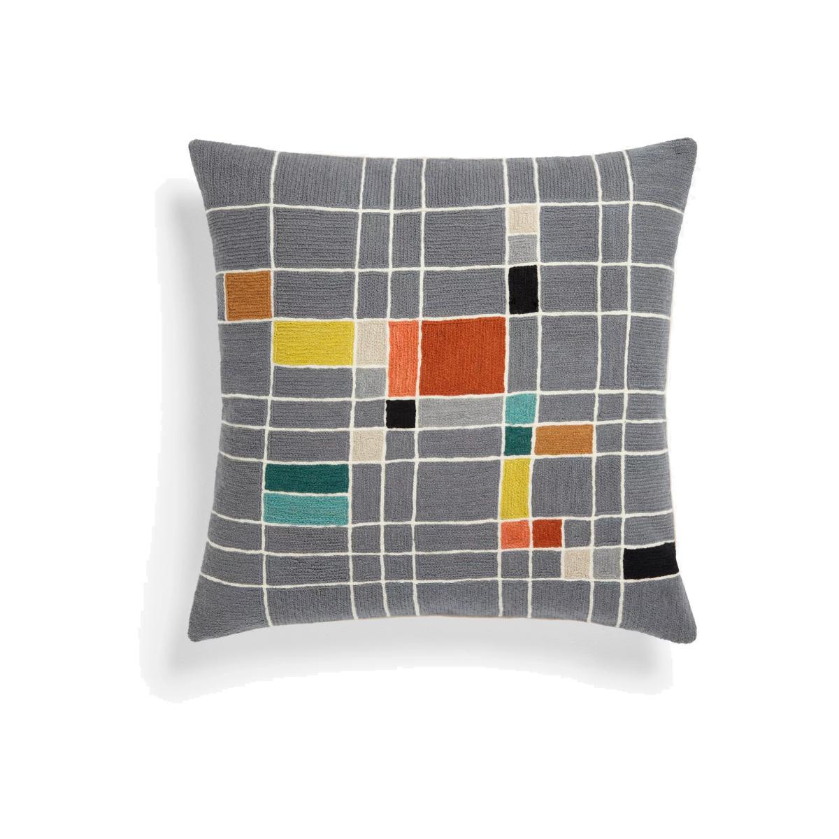 This colourful, embroidered cushion is inspired by the works of the artist Piet Mondrian.