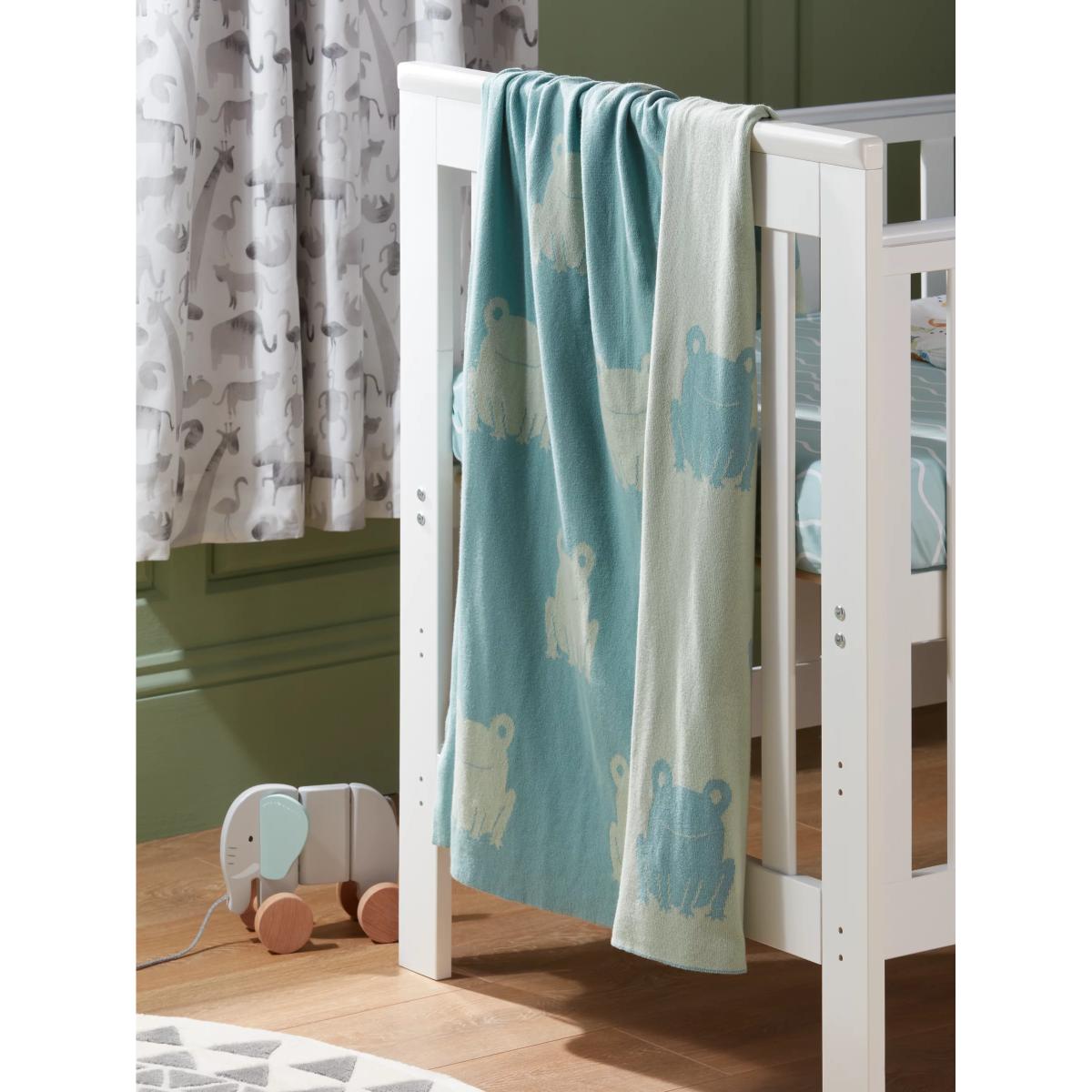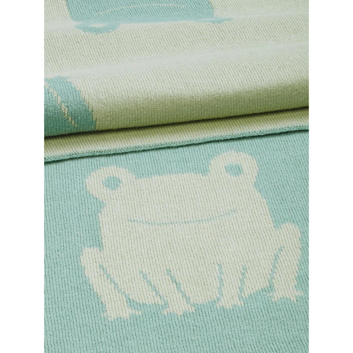 With a cute design made for modern life, this cotton knitted blanket gives your baby a soft, comfortable, and cosy feeling so they can drift easily off to sleep. Part of our Jungle nursery range, this blanket features an allover frog print on both the front and the back making the style reversible. Pair with other items in the range for a complete look. Better Cotton By choosing our cotton products, you’re supporting our investment in Better Cotton’s mission to help cotton communities survive and thrive while protecting and restoring the environment. Better Cotton Farmers are farmers who care for the environment and respect workers’ rights and wellbeing. This product is sourced via a system of mass balance and therefore may not contain Better Cotton. bettercotton.org/massbalance