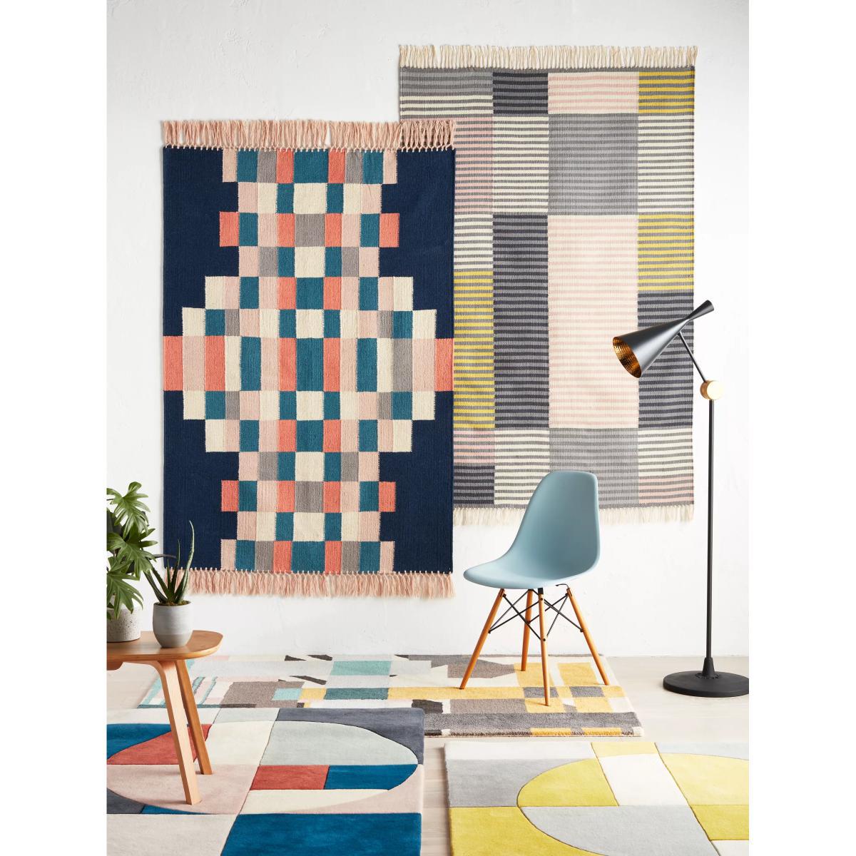 Hand-tufted and hand-looped, our 100% wool Kastrup Rug is offered in a unique, check design and features contrasting colours and shapes making it the perfect way to add interest to a neutrally toned room. Latex backed About your new rug: Each rug is unique and a slight variance in colour is to be expected. Light shedding is expected particularly in new rugs, this will reduce over time and will not affect the quality or longevity of the rug. We recommend that your rug is placed in a low traffic area, and we recommend that you vacuum your rug occasionally to keep it clean, do not use a vacuum cleaner with a spinning brush head. Generally light dirty marks can be cleaned with a damp cloth and new spills are blotted. Do not use detergents to clean or dry clean your rug. Specialist cleaning is recommended. Latex backed so unsuitable for use in rooms with underfloor heating. The John Lewis Foundation: This rug has been handmade in an area of India where not all children have access to education. Through the John Lewis Foundation, which was set up to help improve the well-being of disadvantaged communities, we have worked with a local charity Care & Fair India to fund the building and running of a new school offering secondary education to teenage girls who would not otherwise have this opportunity. John Lewis Foundation, a registered charity: 11181620.The John Lewis Foundation was established to benefit communities in the UK and overseas. Since 2007, it's supported 50 charities in 9 countries promoting education, enterprise and employment.