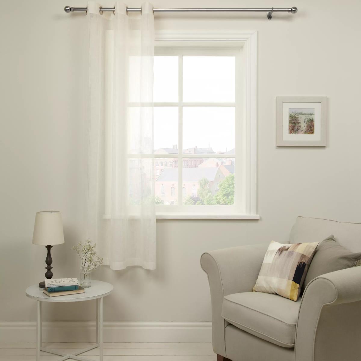 For adding a little privacy to your room this lightweight voile has a subtle ladderstich design and bronze eyelets.