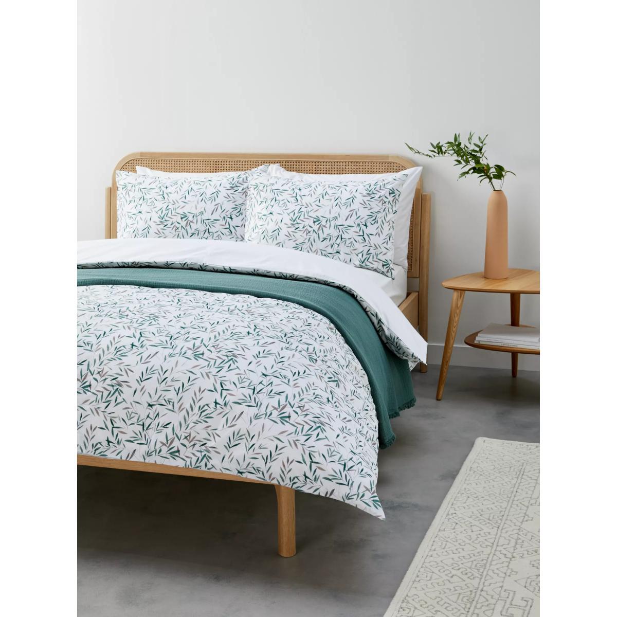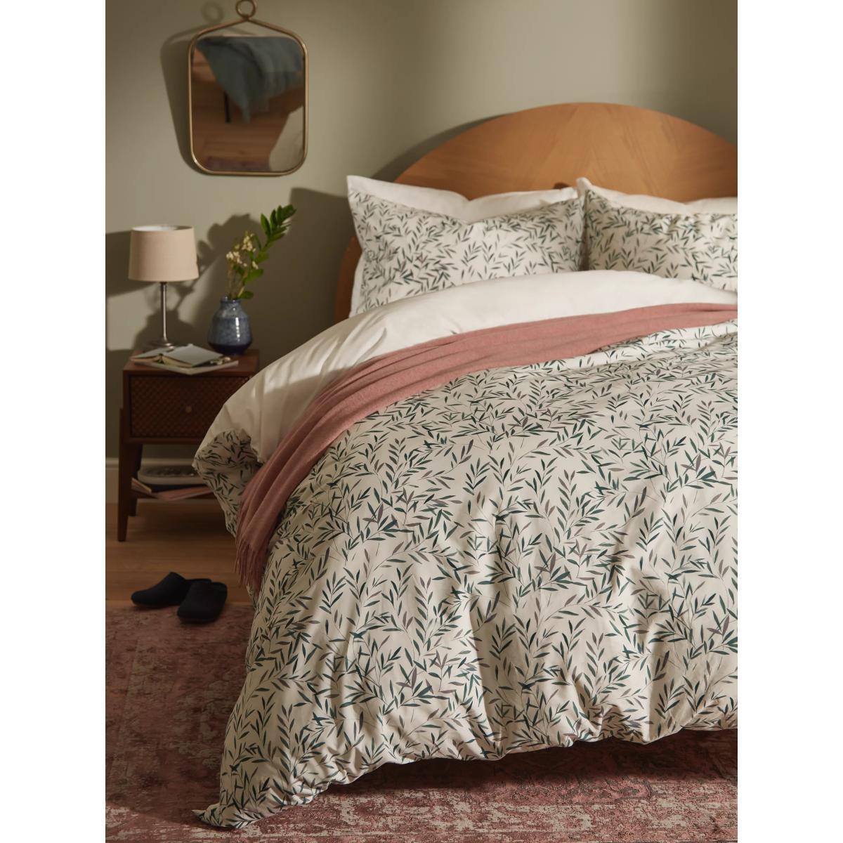 Langley is a trailing leaf print designed to bring a relaxed ambience to your bedroom. It's made from 100% cotton fabric to help keep you cool and comfortable throughout the night. The single set comes with one standard pillowcase, while the double, king and super king sets come with two standard pillowcases. Have you thought about sheeting? Shop. Bedding sizes To fit duvet/pillow size (cm) Standard pillowcase, L75 x W50cm Single duvet cover, L200 x W135cm Double duvet cover, L200 x W200cm King duvet cover, L220 x W225cm Super king duvet cover, L220 x W260cm