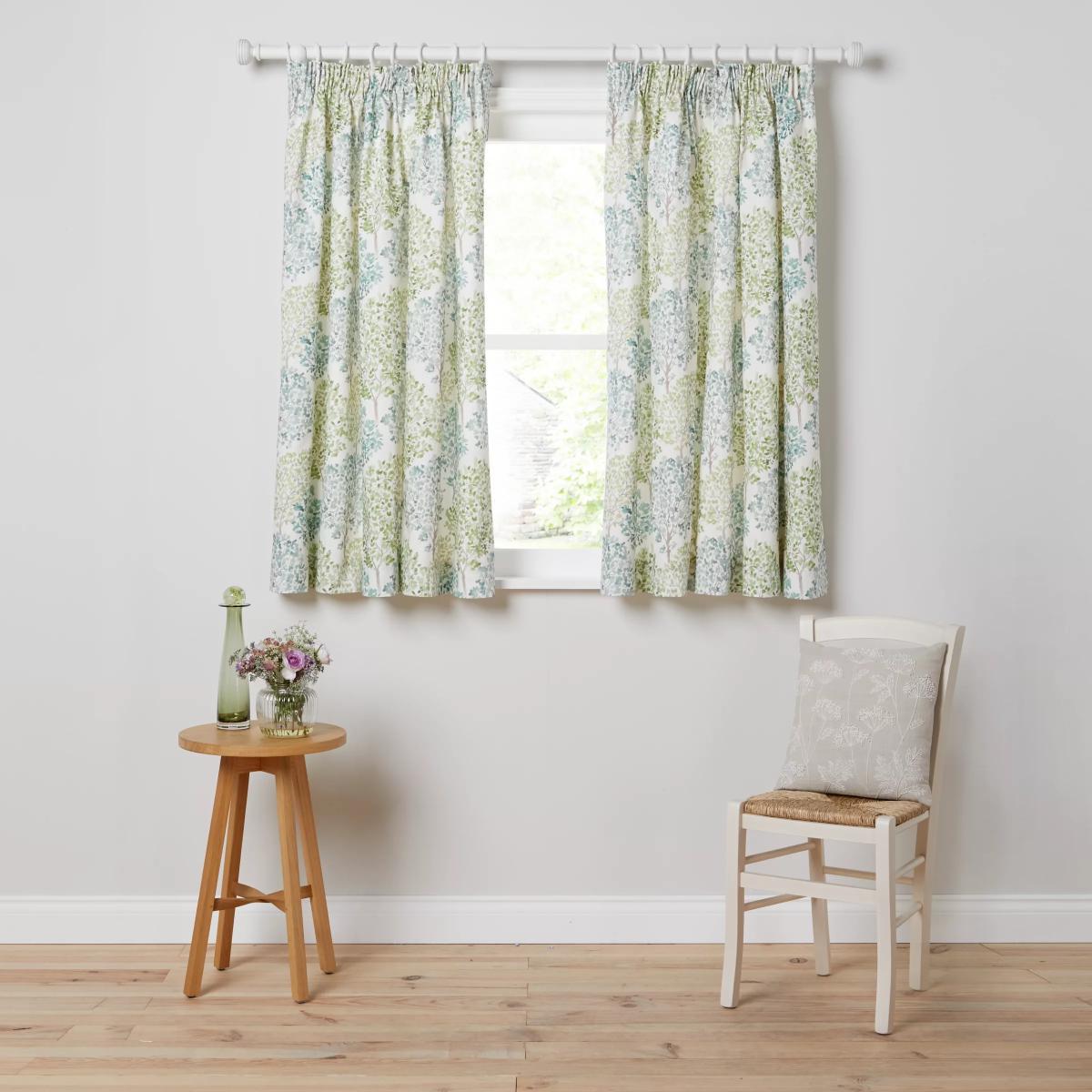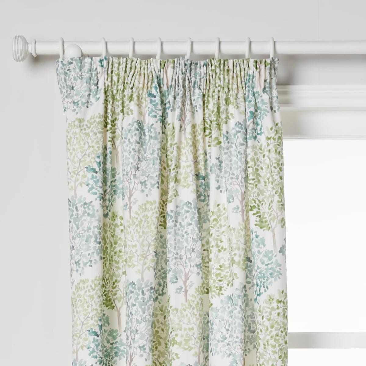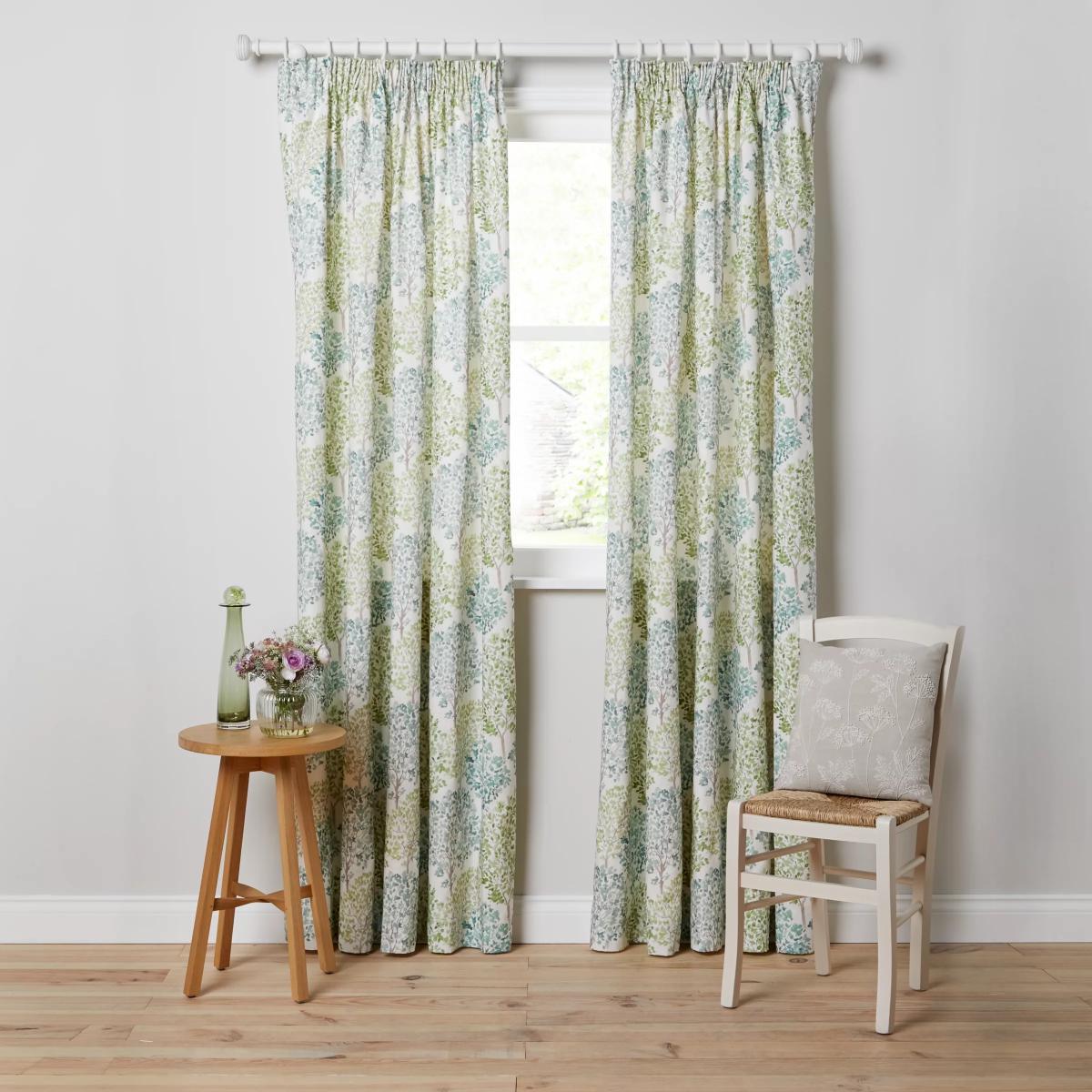 100% cotton curtains printed with a whole forest of leafy green trees. The soft lining lends a full look, improving drape and enhancing the vibrancy of the pattern. More sustainably sourced. The cotton in these curtains has been produced in line with the Better Cotton Initiative (BCI). This is a not-for-profit organisation which exists to make global cotton production better for the people who produce it, better for the environment it grows in, and better for the sector’s future. BCI works with partners around the world such as WWF, Solidaridad and Cotton Connect to train farmers to produce cotton more sustainably. By buying cotton products from John Lewis & Partners, you’re supporting the training of these farmers to use water efficiently, care for the health of the soil and natural habitats, reduce the use of the most harmful chemicals and apply principles of fair and decent work. Choosing the right size. These curtains can be hung with a pole or track using curtain hooks (not included). There are three hook positions on the heading, allowing you to choose how your curtains sit against the track or pole. For example, if you're using a track you may want to use the middle or lower row of hooks to cover the track, whereas if you're using a pole you may want to use the top row of hooks so the curtains hang below the rings. The specified drop is taken from the top row of hook pockets to the bottom edge of the curtain. The width stated indicates the size of one curtain panel when laid completely flat. This pack contains two panels, and the track/pole length we've recommended allows for the two panels to be gathered when the curtains are drawn. For a fuller look, increase the curtain width. One pair of 167cm width curtains will fit a curtain track/pole size of 133-167cm. One pair of 228cm width curtains will fit a curtain track/pole size of 182-228cm. Worth knowing. We package our curtains in recycled materials to keep them protected whilst they make their way to you. This means that when they arrive there could be some creases in them. We recommend you hang them for a few days to allow them to flatten and for the creases to fall out. If after this period your curtains still show signs of being folded then follow the ironing instructions on the back of the packaging. Be aware that each style of curtain has different ironing instructions, including heat limitations according to the fabric, so do make sure you follow the guidance provided to get the best results. Do you need a curtain pole/track and accessories? Shop. Here.