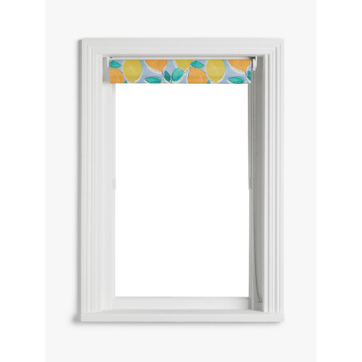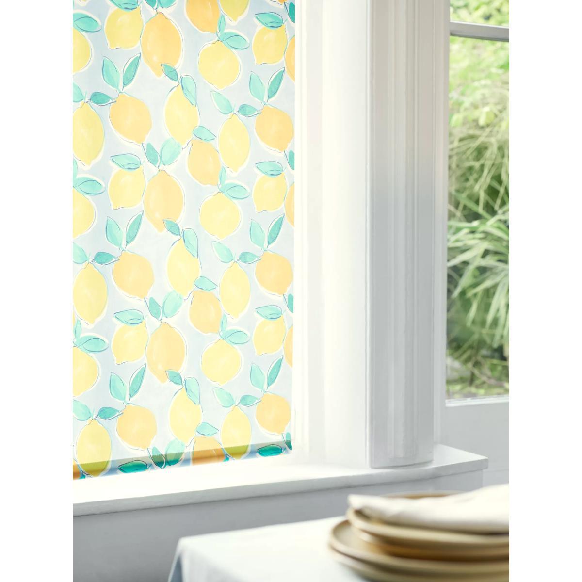 Featuring oversized lemons this daylight blind offers some privacy without blocking out all light. Key features: Can be installed either inside or outside the window recess, to the wall or ceiling Can be standard or reverse rolled. Standard gives a close fit to the window, helping eliminate light. Reverse brings the material forward over the roll which conceals it and creates space between the blind and window Chain mechanism can be attached on the left or right-hand side, without affecting the way the blind is rolled Width can be cut to size Supplied with easy fit universal brackets Includes safety devices to keep children safe Worth knowing... The width stated in our product specifications is the total width of the blind including mechanisms and brackets. The width of the fabric alone will be a few centimetres less than this. Safety warning Young children can be strangled by loops in pull cords, chains, tapes and inner cords that operate the product. To avoid strangulation and entanglement, keep cords out of the reach of young children - cords may become wrapped around a child's neck Move beds, cots and furniture away from window covering cords Do not tie cords together. Make sure cords do not twist and create a loop More information on child safety can be found on our Child Safety Hub