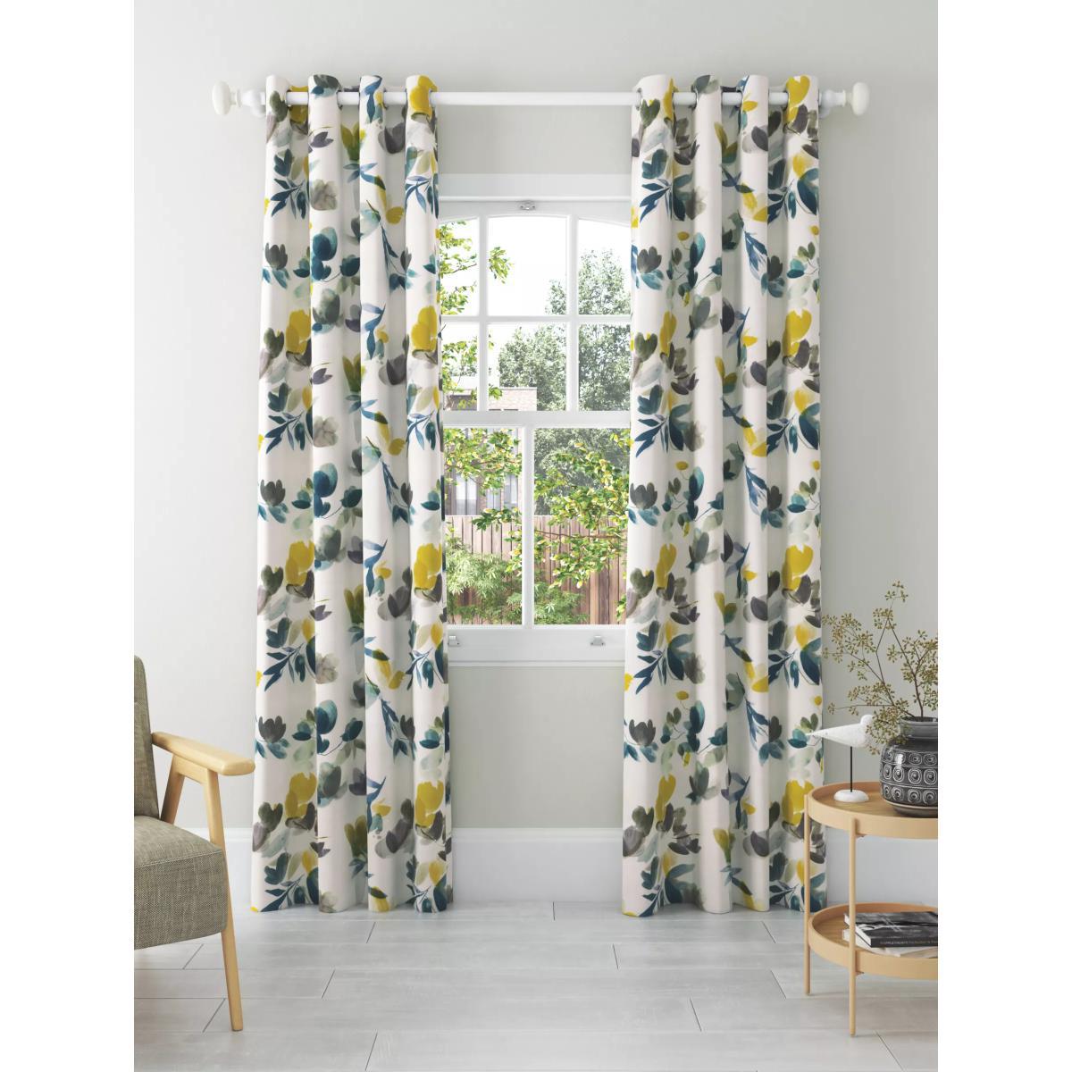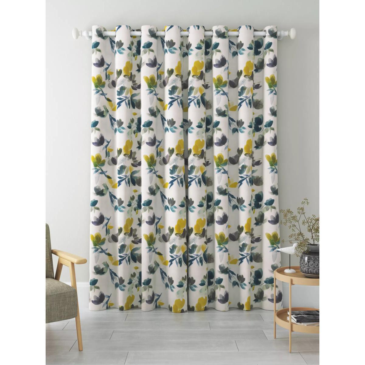 Digitally printed, our Lenton Rose curtains have a soft, painterly design. The eyelet heading gives them a more contemporary look with large, even folds and the blackout lining eliminates light, lending a full look to the curtains, improving the drape and enhancing the vibrancy of the pattern. Warm in winter, cool in summer As the blackout lining on these curtains blocks out sunlight they help keep your room cool as well as dark. This lining also adds an extra layer of insulation to the curtains, giving them the added benefit of being thermal. They protect against both heat loss and heat gain, regulating the temperature of your room so you’re kept warm in winter and cool in summer. By buying cotton products from John Lewis & Partners, you're supporting more sustainable cotton farming through the Better Cotton Initiative. BCI is a not-for-profit organisation which exists to make global cotton production better for the people who produce it, better for the environment it grows in, and better for the sector's future. BCI works with partners around the world such as WWF, Solidaridad and Cotton Connect to train farmers to produce cotton more sustainably. Better Cotton is sourced via a principle of "mass balance" and is not physically traceable to end products. However, BCI Farmers benefit from the demand for Better Cotton in equivalent volumes to those we source. The width stated indicates the size of one curtain panel when laid completely flat. This pack contains two panels and the track/pole length we've recommended allows for the two panels to be gathered when the curtains are drawn. For a fuller look, increase the curtain width. One pair of 167cm width curtains will fit a curtain track/pole size 133-167cm One pair of 228cm width curtains will fit a curtain track/pole size 182-228cm Worth knowing... We package our curtains in recycled materials to keep them protected whilst they make their way to you. This means that when they arrive there could be some creases in them. We recommend you hang them for a few days to allow them to flatten and for the creases to fall out. If after this period your curtains still show signs of being folded then follow the ironing instructions on the back of the packaging. Be aware that each style of curtain has different ironing instructions, including heat limitations according to the fabric, so do make sure you follow the guidance provided to get the best results. Do you need a curtain pole and accessories?