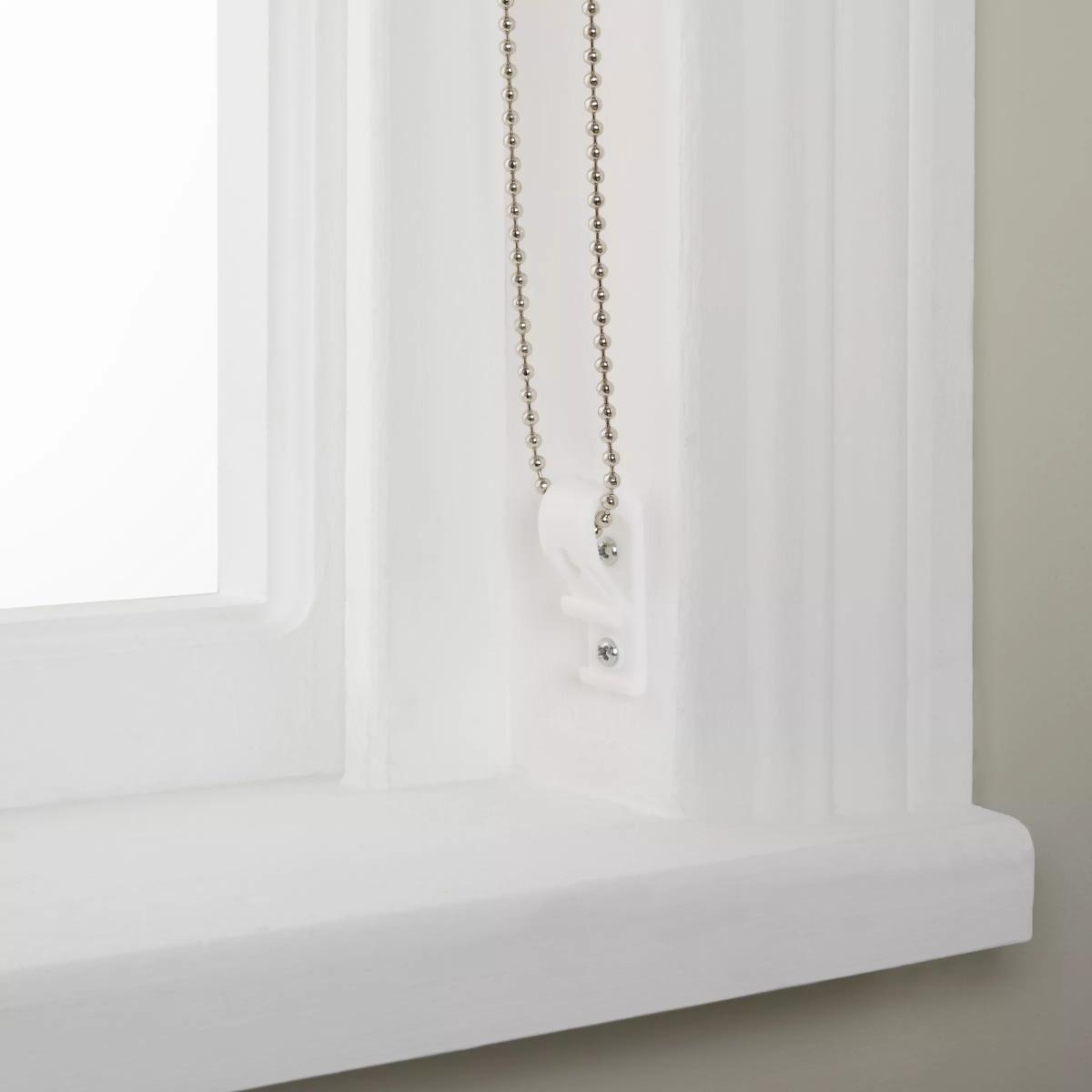 This blackout blind eliminates light and gives 100% privacy, allowing you to get a sound night’s sleep. Key features: Can be installed either inside or outside the window recess, to the wall or ceiling Can be standard or reverse rolled. Standard gives a close fit to the window, helping eliminate light. Reverse brings the material forward over the roll which conceals it and creates space between the blind and window Chain mechanism can be attached on the left or right-hand side, without affecting the way the blind is rolled Width can be cut to size Supplied with easy fit universal brackets Includes safety devices to keep children safe Warm in winter, cool in summer As the blackout lining on this blind blocks out sunlight it helps keep your room cool as well as dark. This 3 layer blackout coating also adds an extra layer of insulation, giving the blind thermal properties which aren’t found on non-blackout blinds. It protects against both heat loss and heat gain, regulating the temperature of your room so you’re kept warm in winter and cool in summer. Worth knowing... The width stated in our product specifications is the total width of the blind including mechanisms and brackets. The width of the fabric alone will be a few centimetres less than this. Safety warning Young children can be strangled by loops in pull cords, chains, tapes and inner cords that operate the product. To avoid strangulation and entanglement, keep cords out of the reach of young children - cords may become wrapped around a child's neck Move beds, cots and furniture away from window covering cords Do not tie cords together. Make sure cords do not twist and create a loop More information on child safety can be found on our