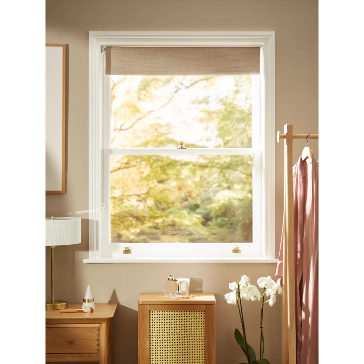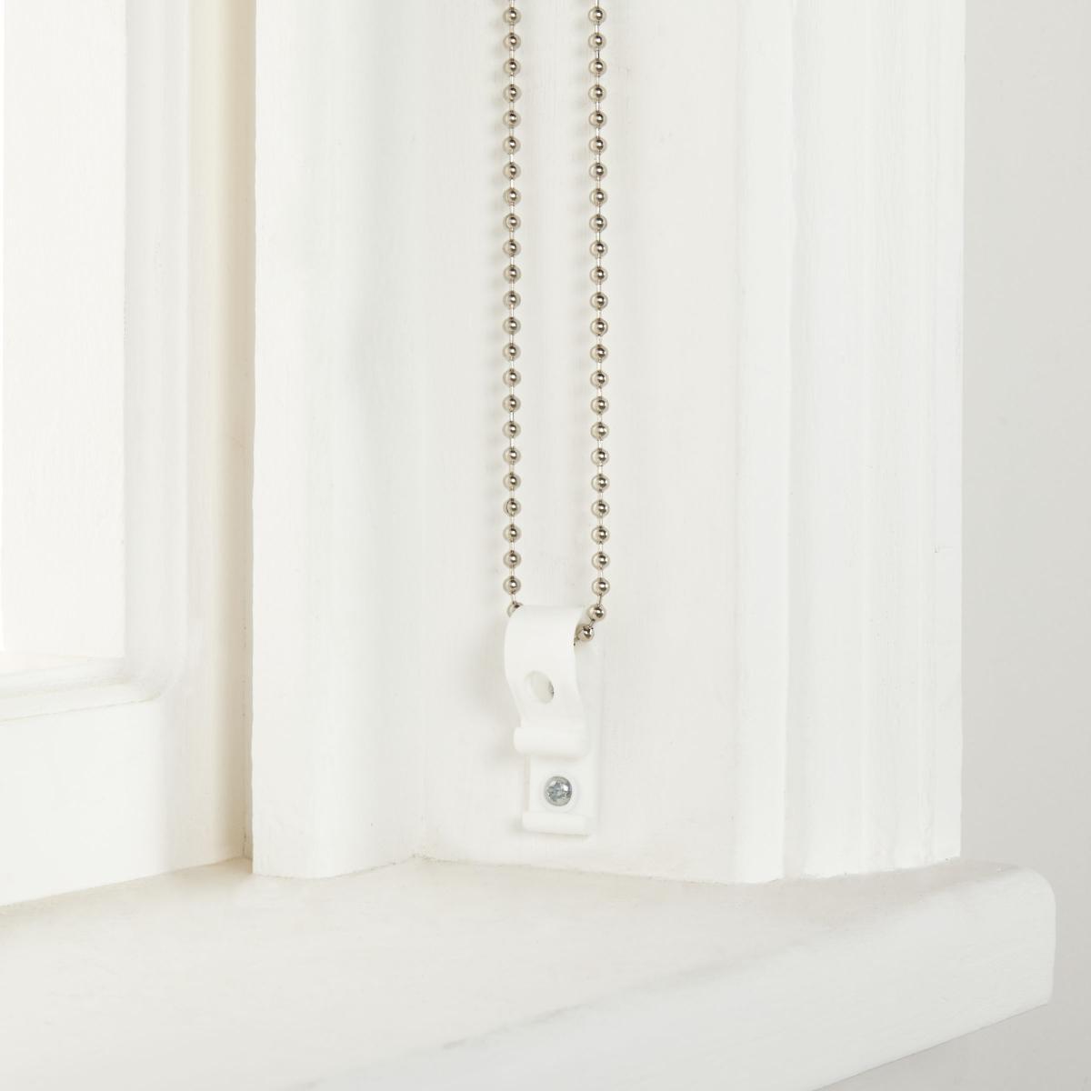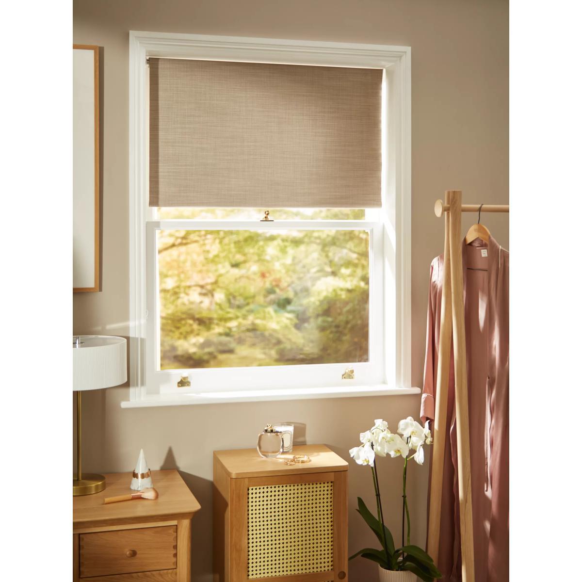 This blackout blind eliminates light and gives 100% privacy, allowing you to get a sound night's sleep. Key features: Can be installed either inside or outside the window recess, to the wall or ceiling Can be standard or reverse rolled. Standard gives a close fit to the window, helping eliminate light. Reverse brings the material forward over the roll which conceals it and creates space between the blind and window Chain mechanism can be attached on the left or right-hand side, without affecting the way the blind is rolled Width can be cut to size Supplied with easy fit universal brackets Includes safety devices to keep children safe Warm in winter, cool in summer As the blackout lining on this blind blocks out sunlight it helps keep your room cool as well as dark. This 3 layer blackout coating also adds an extra layer of insulation, giving the blind thermal properties which aren't found on non-blackout blinds. It protects against both heat loss and heat gain, regulating the temperature of your room so you're kept warm in winter and cool in summer. Worth knowing... The width stated in our product specifications is the total width of the blind including mechanisms and brackets. The width of the fabric alone will be a few centimetres less than this. Safety warning Young children can be strangled by loops in pull cords, chains, tapes and inner cords that operate the product. To avoid strangulation and entanglement, keep cords out of the reach of young children - cords may become wrapped around a child's neck Move beds, cots and furniture away from window covering cords Do not tie cords together. Make sure cords do not twist and create a loop More information on child safety can be found on our Child Safety Hub