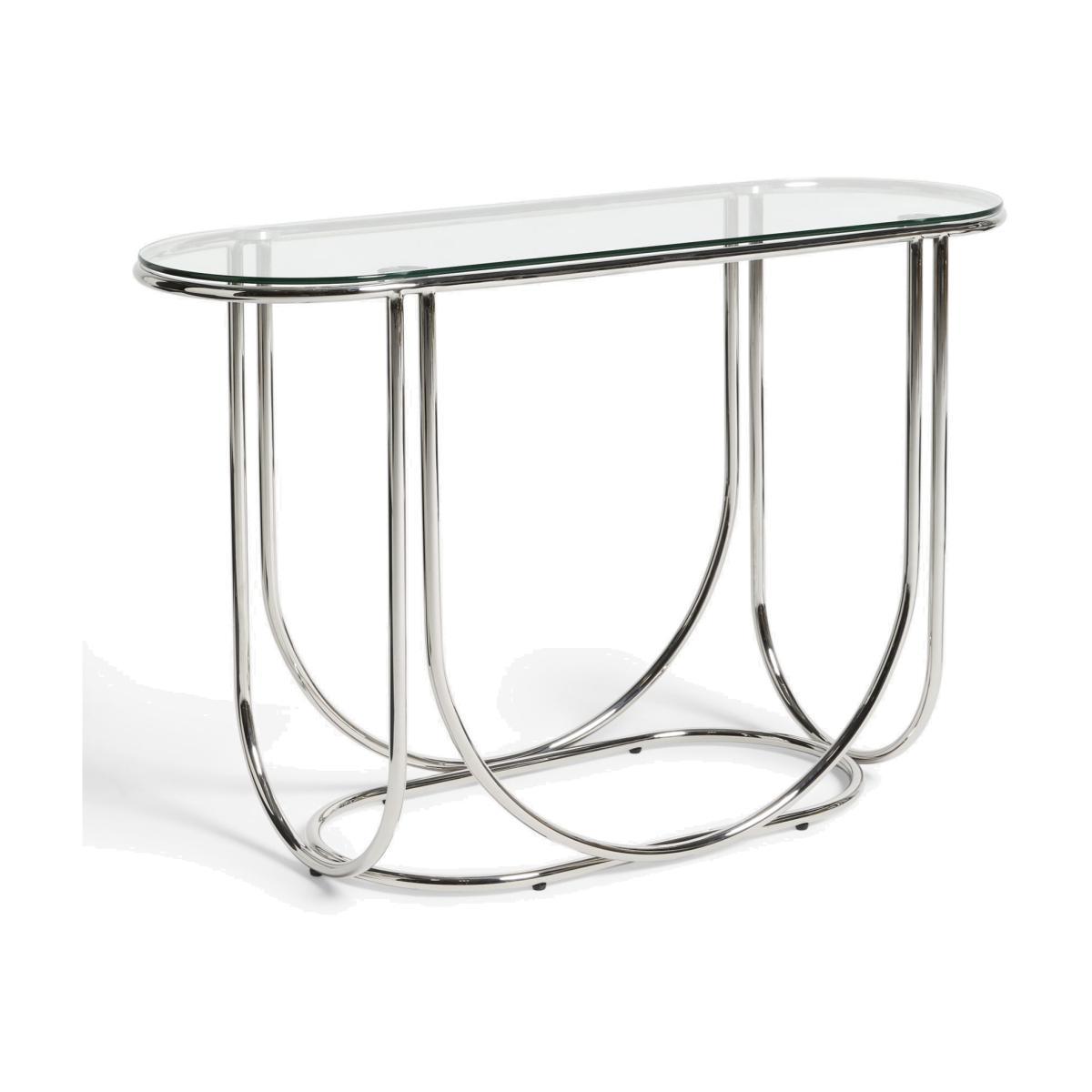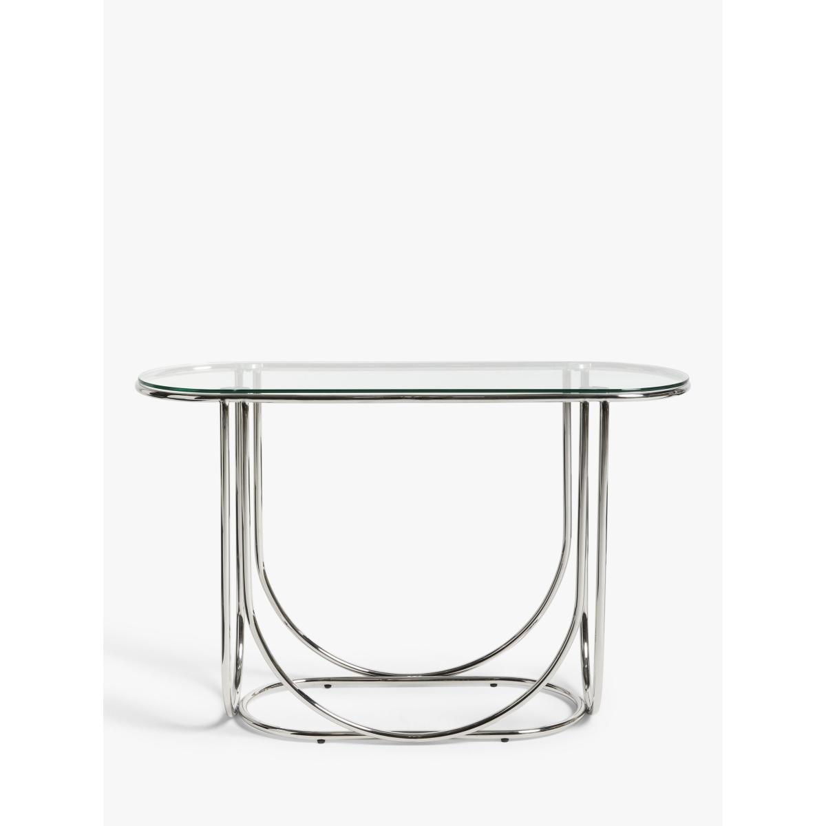A crisp, modern and sculptural console table, perfect for hallways. It's made from tempered glass and sturdy steel and it's so easy to style, whether your interiors are contemporary or more traditional. We like how the curved profile of the base gives the design a more statement look, but also keeps it light and airy. Plus, the narrow width means it won't take up too much space in your room. Style it with a bold table lamp and accessories, just don't forget coasters or protective mats to protect it. Want to see it first? You may want to see and get a feel for the furniture in one of our shops before ordering. We'll be able to tell you where the range you'd like to view is on display.