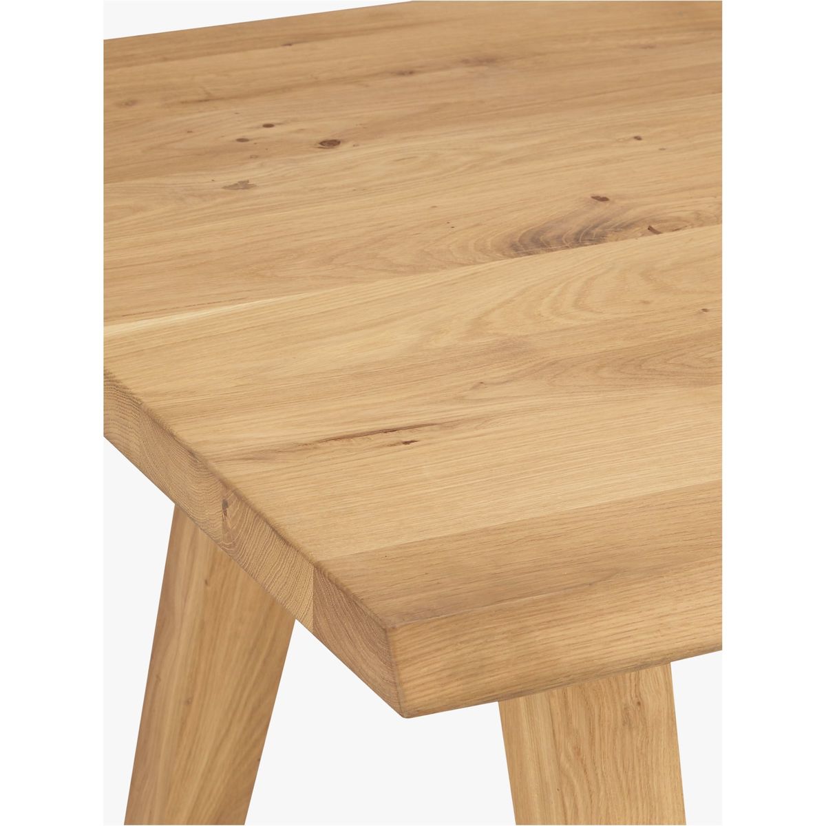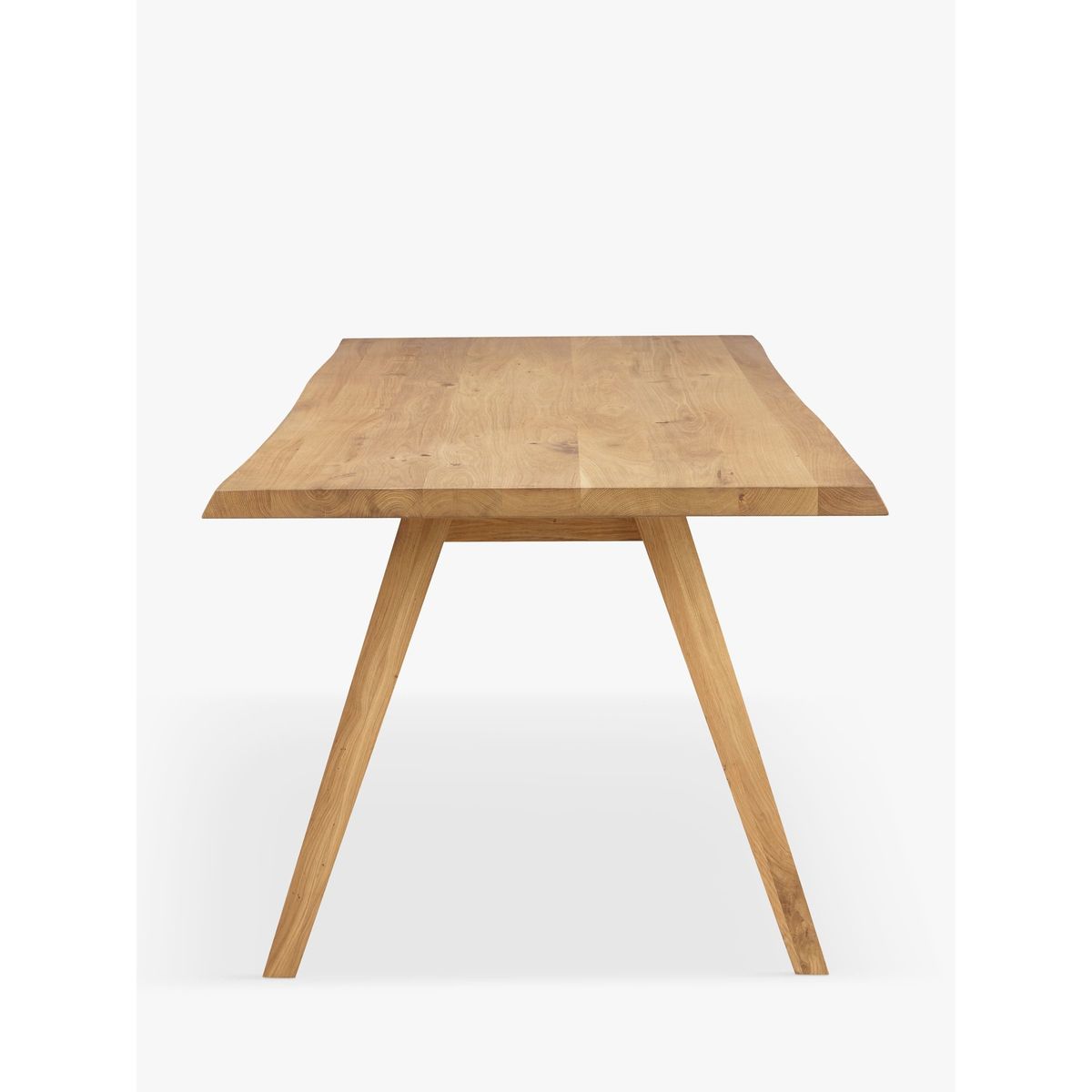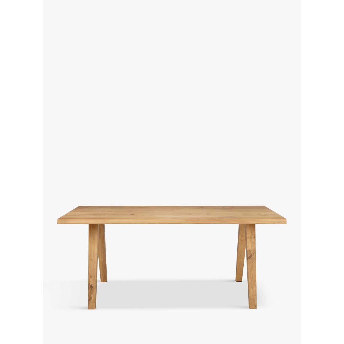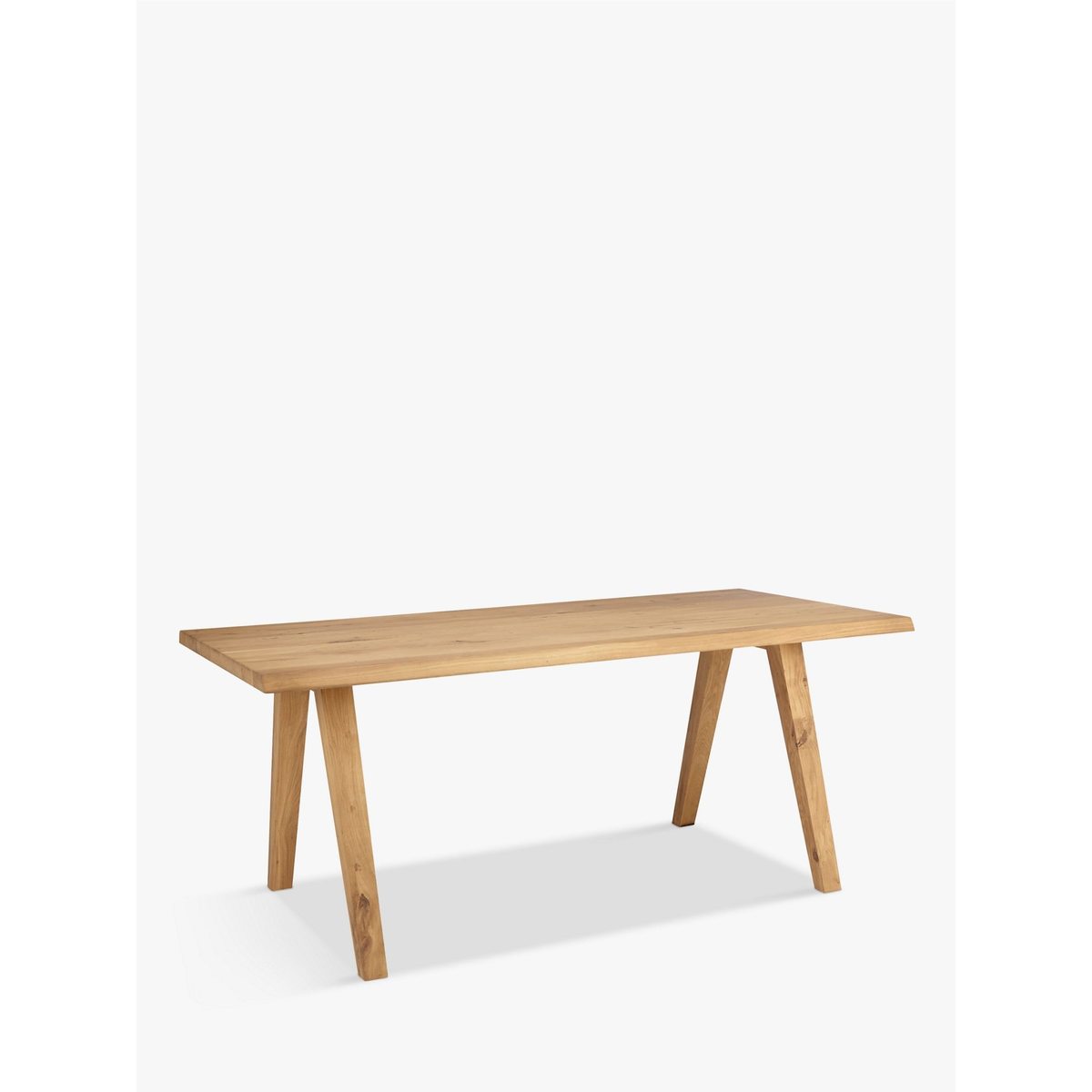 Natural design at its most authentic, our Lorn dining table is made from solid American oak that highlights all of its distinctive grains and knots. Its A-frame shape feels modern and minimalist and provides seating for six people in total. Known as a live edge, we have incorporated the natural edge of the wood into the design of this table, in order to keep the look organic and reinforce the warm tone of the oak. Good to know We've treated the oak with oil which acts like a lacquer and gives the table a permanent finish, so there's no need to re-apply oil to this table. Want to see it first? You may want to see and get a feel for the furniture in one of our shops before ordering. We'll be able to tell you where the range you'd like to view is on display.