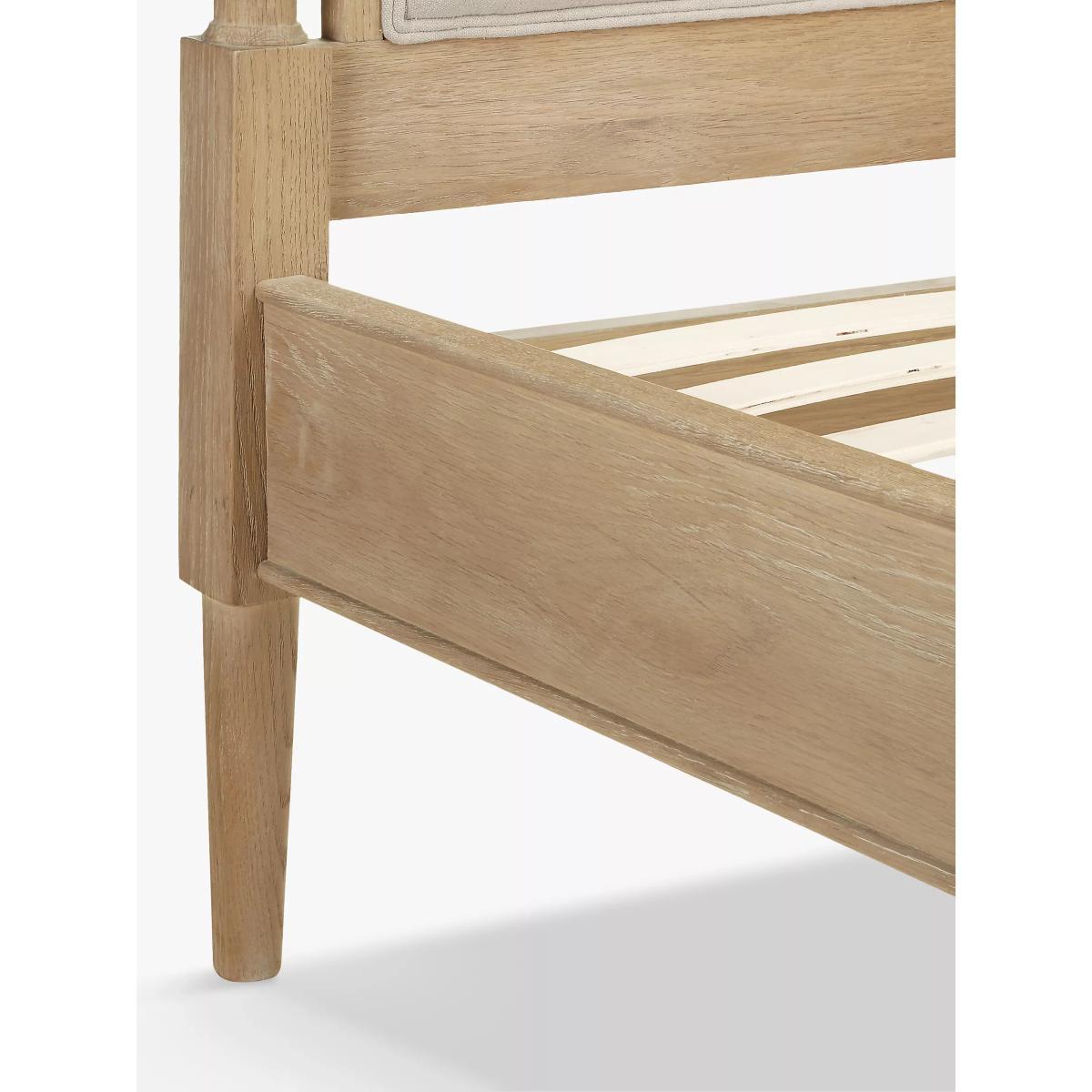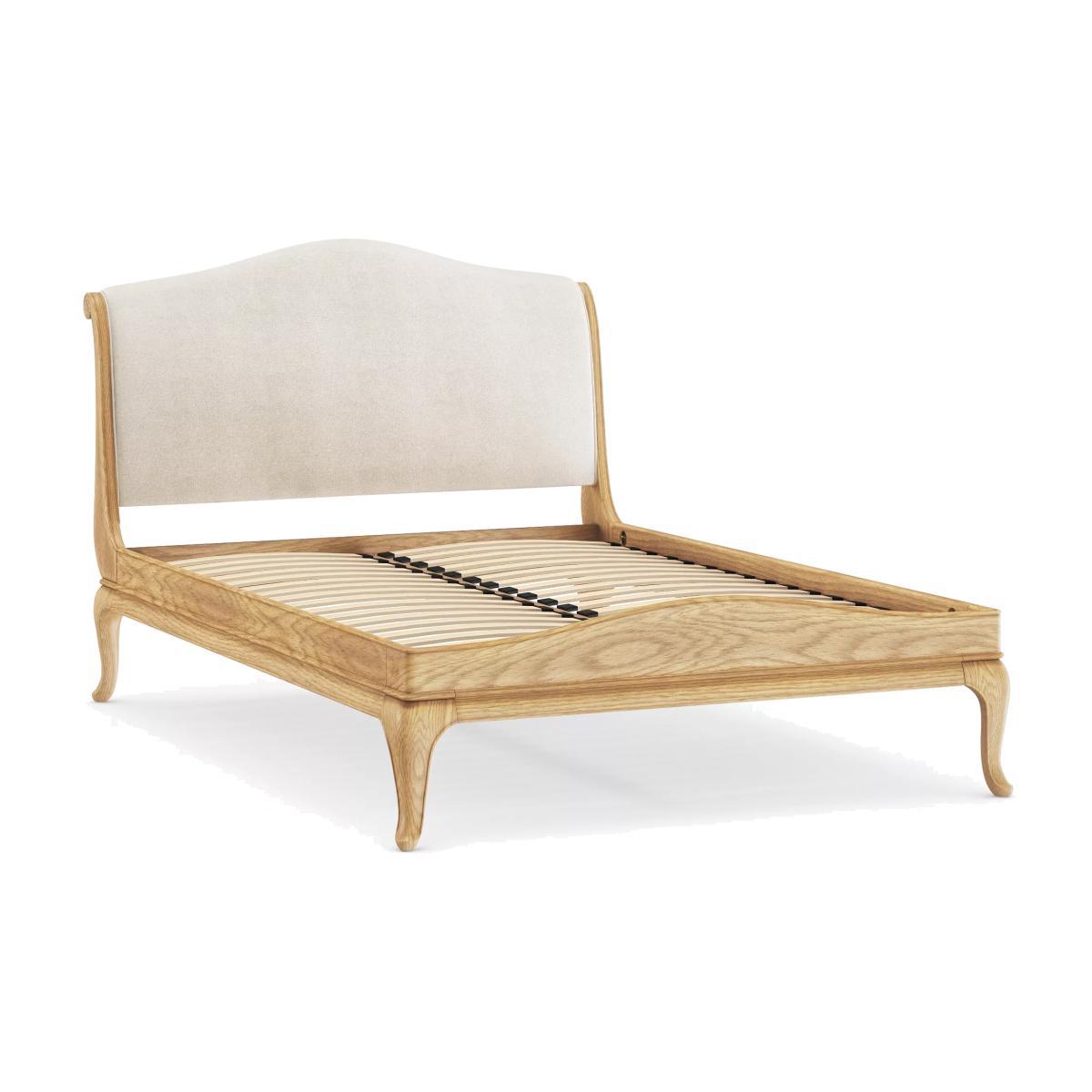 Craftsmanship at its finest. With an air of classical nostalgia, our Louis bed frame is made from solid white oak in a natural lacquer. Its weathered finish brings out the warmth of the wood and highlights its distinctive grains and tones. Handcrafted carvings on the frame honour its authentic period style and complement the fabric upholstery on the headboard. We've also added supportive sprung slats to the base. It's all the little details that help to make this bed frame a focal point in your bedroom. Want to see it first? You may want to see and get a feel for the furniture in one of our shops before ordering. We'll be able to tell you where the range you'd like to view is on display.