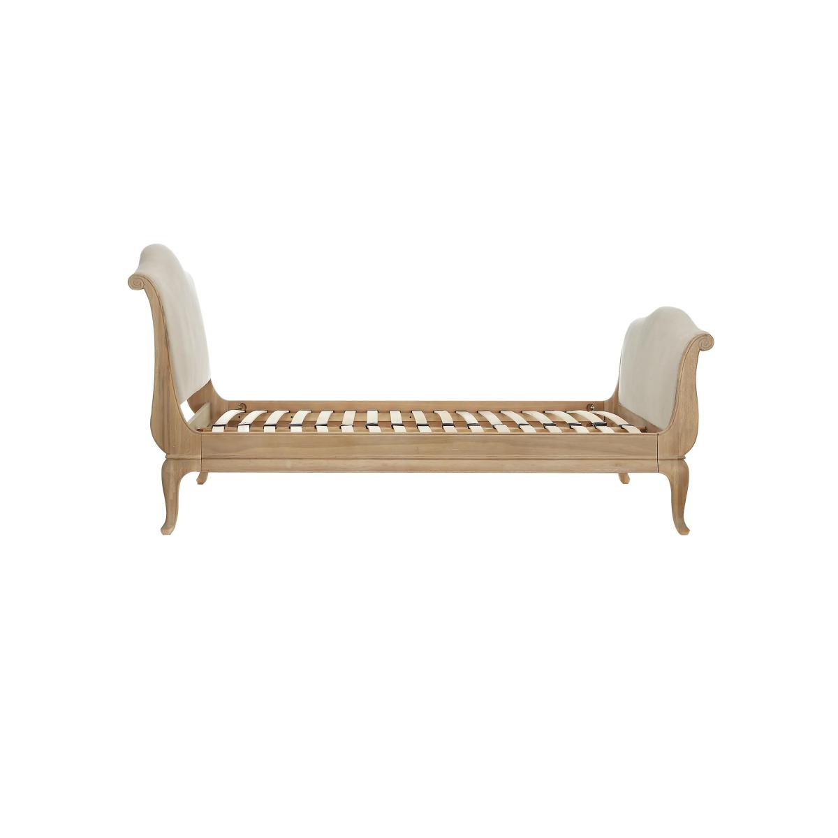 Craftsmanship at its finest. With an air of classical nostalgia, our Louis high end bed frame is made from solid white oak in a natural lacquer and made using traditional joinery techniques. Its aged finish brings out the varying patterns and warm tones of the wood and upholstery on the headboard and foot end honours an authentic period style. We've also added supportive sprung slats to the base. It's all the little details that help to make this bed frame a focal point in your bedroom. Want to see it first? You may want to see and get a feel for the furniture in one of our shops before ordering. We'll be able to tell you where the range you'd like to view is on display.