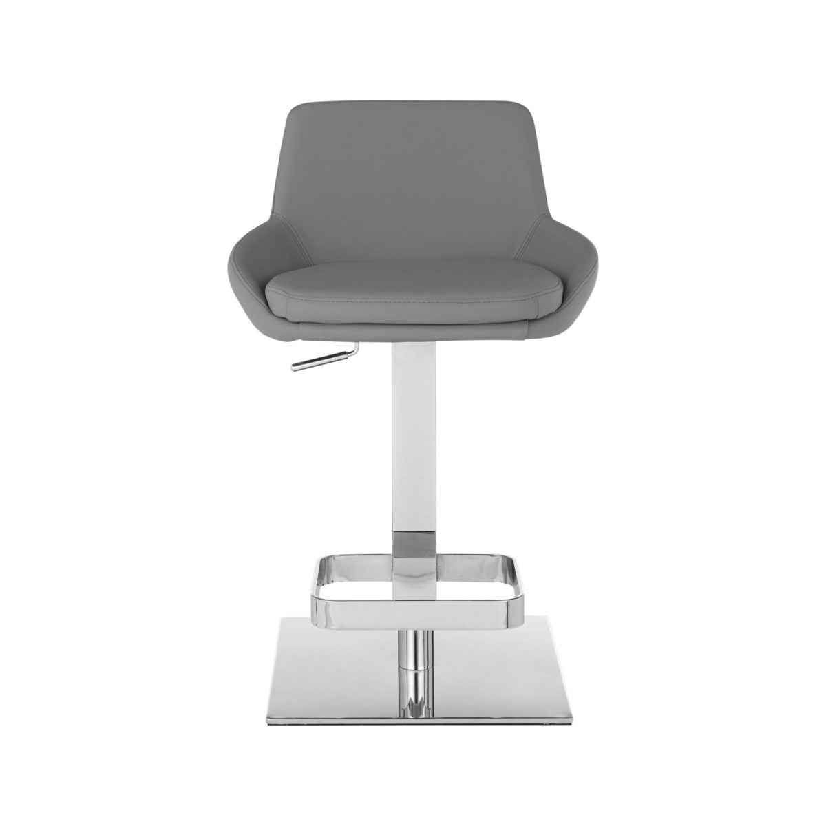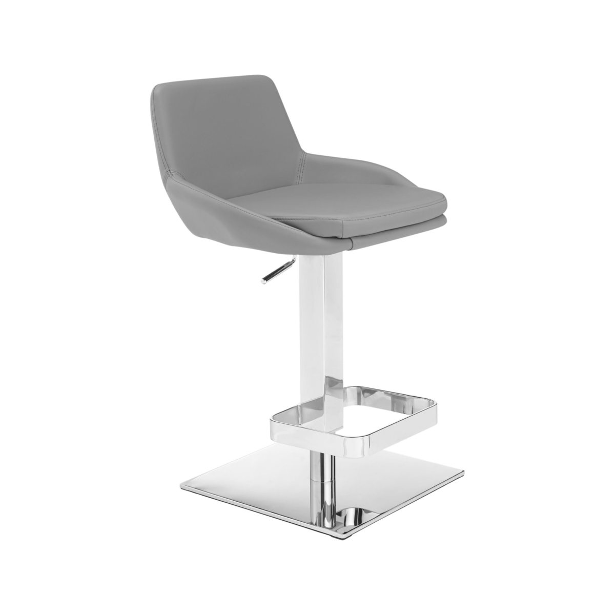 A comfortable, convenient and contemporary piece for the modern home, the Calligaris New York adjustable bar chair features an upholstered seat and widely curved backrest, accented by a tubular steel frame. Meanwhile, the sleek steel pedestal base adjusts the seat's height with an easy gas-lift mechanism, allowing it to swivel. Upholstered in Gummy faux leather - an easy-to-clean, synthetic material that is soft to the touch - this ergonomic designer chair is ideal for completing the furnishing of your bar area.