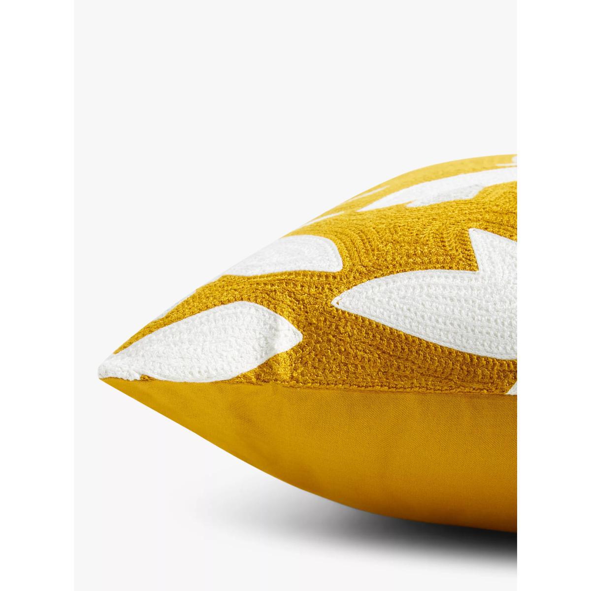 I really like this cushion for adding a pop of colour and pattern to a neutral space. Its bold, botanical design works particularly well in modern or Scandi-inspired interiors, where clean lines and minimal clutter are key. The mustard hue is versatile enough to complement greys, navy, or even blush tones, making it a great choice for living rooms or bedrooms. When styling, consider pairing it with softer, textured throws or other cushions in complementary colours to create a cosy layered look. It’s also a practical piece-just keep an eye on the care label for cleaning instructions to maintain its vibrant print over time.