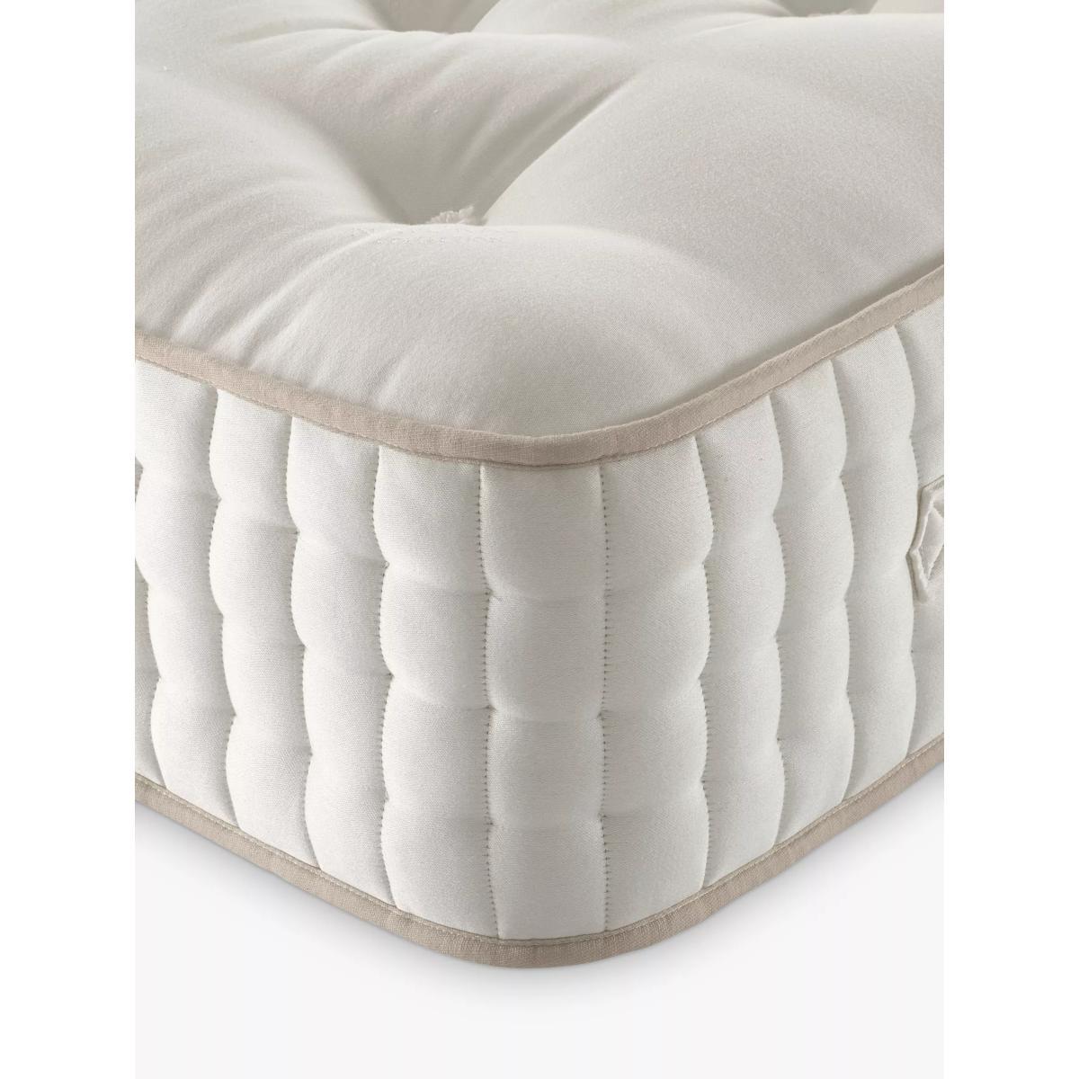 Our Luxury Natural Collection is handmade by experts in Yorkshire, with natural fillings chosen for their wonderful comfort, temperature-regulating and moisture-wicking properties. The innovative, high-density pocket springs reduce pressure points and give excellent targeted support. Plus, the combination of eco-friendly and natural fillings, alongside a completely glue-free design means these mattresses are fully recyclable at end of life for a much more sustainable sleep space. Neither too soft, nor too firm, our Regular tension models provide just the right balance of support, however you sleep. Natural fillings Manufactured in Yorkshire by Harrison Spinks, this mattress is upholstered with layers of locally-sourced natural fillings. Fine mohair is blended with British fleece wool to provide a sumptuous and luxurious feel, while hemp wicks away moisture, keeping your bed fresh and hygienic. The cover is also made with insulating, luxury wool which is fully traceable to British farms. It's naturally fire retardant and free from chemical treatment for a healthier sleep. Cortec™ Quad Revolution pocket spring system This glue-free support system has been designed, developed and manufactured in-house, with a design that unites comfort and sustainability. It offers a two-stage level of support thanks to a spring-in-spring design, delivering even greater lumbar support and pressure relief. The heavier parts of your body will be perfectly supported to help maintain an aligned spine and to prevent unwanted aches and pains. Plus, as the springs work individually, air can flow better through the mattress to keep the temperature controlled. Eco-friendly design Marking a huge and sustainable step forward in mattress manufacturing, the patented Cortec™ Quad springs are sealed with heat rather than glue. Not only does this mean the springs can work individually for maximum efficiency, it also means each spring can be disassembled and reinvented in the future. So this mattress is 100% recyclable at the end of its life, rather than ending up in landfill sites across the country. We guarantee to recycle your mattress responsibly when you're ready to buy your next one, after seven years. and we'll help you to choose a new mattress and recycle this one. Make the most of your mattress After unwrapping your new mattress, leave it in a well-ventilated room for a few hours. Any natural scent from the fillings will dissipate after a few days. We recommend using a cotton mattress protector and airing your mattress regularly. If you're placing this mattress on a slatted base, ensure the gaps are no more than 7.5cm apart. Try before you buy This is an important purchase and it's worthwhile to try your choice of mattress in store to make sure it's right for you. Our store Partners will be able to tell you more about its benefits, and recommend options based on your needs.