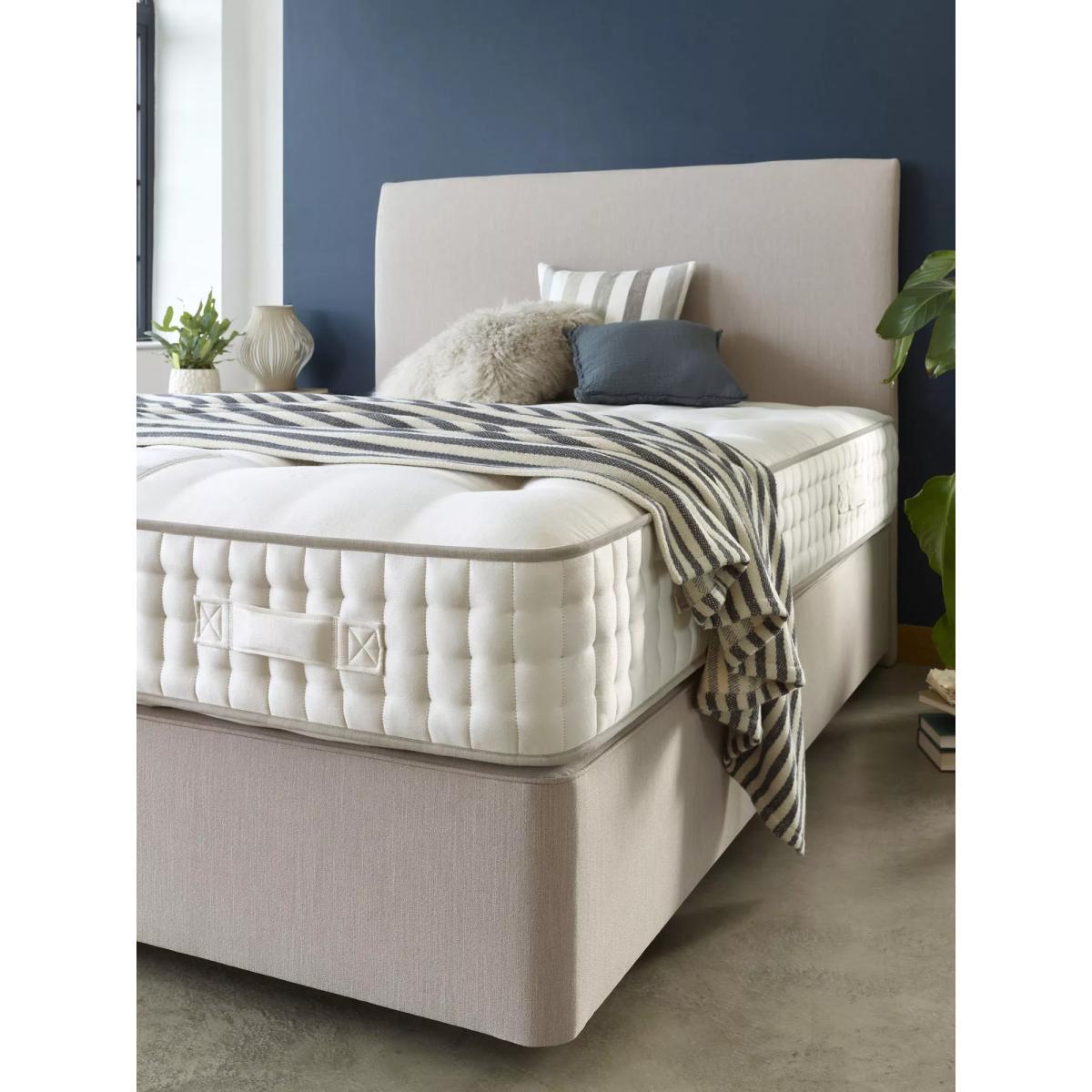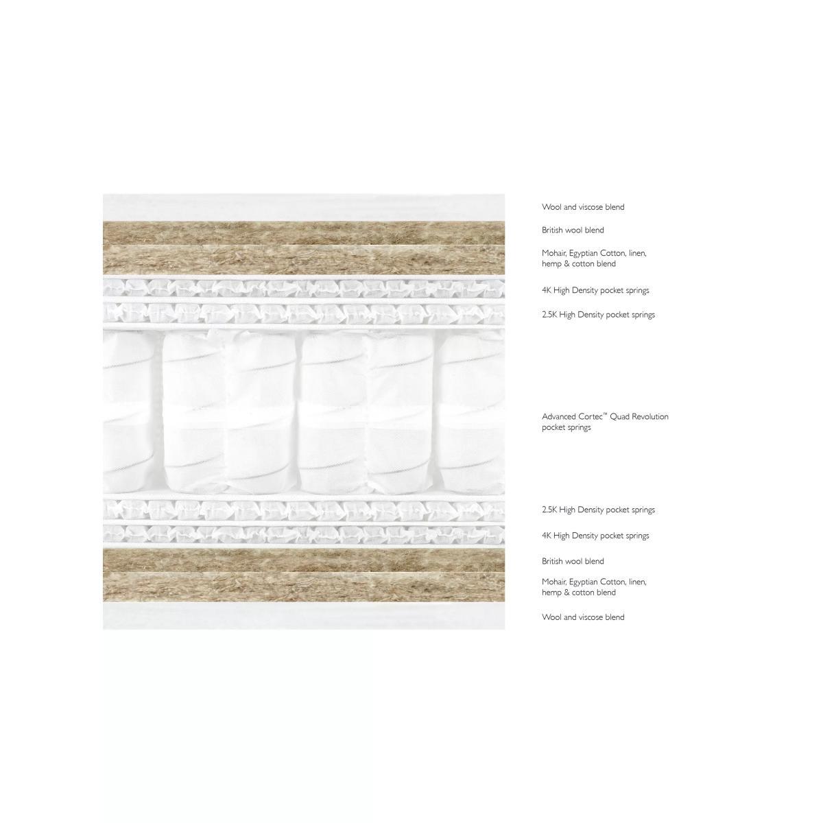 Made in the UK Our Luxury Natural Collection is handmade by experts in Yorkshire, with natural fillings chosen for their wonderful comfort, temperature-regulating and moisture-wicking properties. The innovative, high-density pocket springs reduce pressure points and give excellent targeted support. Plus, the combination of eco-friendly and natural fillings, alongside a completely glue-free design means these mattresses are fully recyclable at end of life for a much more sustainable sleep space. Reassuringly dense with an extra level of support, our Firmer tension models are perfect for those who prefer a firm feel. This zip link model can be used as one large mattress or as two independent mattresses, depending on your needs. Natural fillings Manufactured in Yorkshire by Harrison Spinks, this mattress is upholstered with layers of locally-sourced natural fillings. Fine mohair is blended with British fleece wool to provide a sumptuous and luxurious feel, while hemp wicks away moisture, keeping your bed fresh and hygienic. The cover is also made with insulating, luxury wool which is fully traceable to British farms. It’s naturally fire retardant and free from chemical treatment for a healthier sleep. Cortec™ Quad Revolution pocket spring system This glue-free support system has been designed, developed and manufactured in-house, with a design that unites comfort and sustainability. It offers a two-stage level of support thanks to a spring-in-spring design, delivering even greater lumbar support and pressure relief. The heavier parts of your body will be perfectly supported to help maintain an aligned spine and to prevent unwanted aches and pains. Plus, as the springs work individually, air can flow better through the mattress to keep the temperature controlled. Eco-friendly design Marking a huge and sustainable step forward in mattress manufacturing, the patented Cortec™ Quad springs are sealed with heat rather than glue. Not only does this mean the springs can work individually for maximum efficiency, it also means each spring can be disassembled and reinvented in the future. So this mattress is 100% recyclable at the end of its life, rather than ending up in landfill sites across the country. We guarantee to recycle your mattress responsibly when you’re ready to buy your next one, after seven years. and we’ll help you to choose a new mattress and recycle this one. Make the most of your mattress After unwrapping your new mattress, leave it in a well-ventilated room for a few hours. Any natural scent from the fillings will dissipate after a few days. We recommend using a cotton mattress protector and airing your mattress regularly. If you’re placing this mattress on a slatted base, ensure the gaps are no more than 7.5cm apart. Try before you buy This is an important purchase and it’s worthwhile to try your choice of mattress in store to make sure it's right for you. Our store Partners will be able to tell you more about its benefits, and recommend options based on your needs.