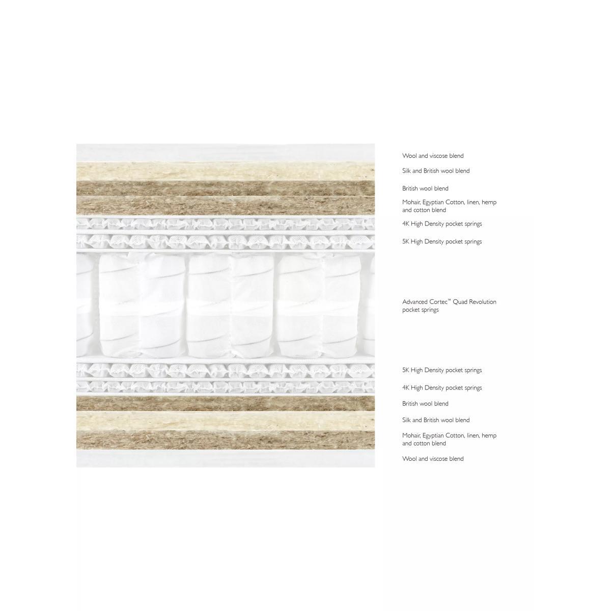 Made in the UK Our Luxury Natural Collection is handmade by experts in Yorkshire, with natural fillings chosen for their wonderful comfort, temperature-regulating and moisture-wicking properties. The innovative, high-density pocket springs reduce pressure points and give excellent targeted support. Plus, the combination of eco-friendly and natural fillings, alongside a completely glue-free design means these mattresses are fully recyclable at end of life for a much more sustainable sleep space. Reassuringly dense with an extra level of support, our Firmer tension models are perfect for those who prefer a firm feel. Natural fillings Manufactured in Yorkshire by Harrison Spinks, this mattress is upholstered with layers of locally-sourced natural fillings. As one of the strongest and most resilient fibres, super-soft silk provides excellent temperature regulation and works with the hemp fillings to absorb and wick away moisture, keeping your bed fresh and hygienic. The cover is also made with insulating, luxury wool which is fully traceable to British farms. It’s naturally fire retardant and free from chemical treatment for a healthier sleep. Cortec™ Quad Revolution pocket spring system This glue-free support system has been designed, developed and manufactured in-house, with a design that unites comfort and sustainability. It offers a two-stage level of support thanks to a spring-in-spring design, delivering even greater lumbar support and pressure relief. The heavier parts of your body will be perfectly supported to help maintain an aligned spine and to prevent unwanted aches and pains. Plus, as the springs work individually, air can flow better through the mattress to keep the temperature controlled. Eco-friendly design Marking a huge and sustainable step forward in mattress manufacturing, the patented Cortec™ Quad springs are sealed with heat rather than glue. Not only does this mean the springs can work individually for maximum efficiency, it also means each spring can be disassembled and reinvented in the future. So this mattress is 100% recyclable at the end of its life, rather than ending up in landfill sites across the country. We guarantee to recycle your mattress responsibly when you’re ready to buy your next one, after seven years. and we’ll help you to choose a new mattress and recycle this one. Make the most of your mattress After unwrapping your new mattress, leave it in a well-ventilated room for a few hours. Any natural scent from the fillings will dissipate after a few days. We recommend using a cotton mattress protector and airing your mattress regularly. If you’re placing this mattress on a slatted base, ensure the gaps are no more than 7.5cm apart. Try before you buy This is an important purchase and it’s worthwhile to try your choice of mattress in store to make sure it's right for you. Our store Partners will be able to tell you more about its benefits, and recommend options based on your needs.