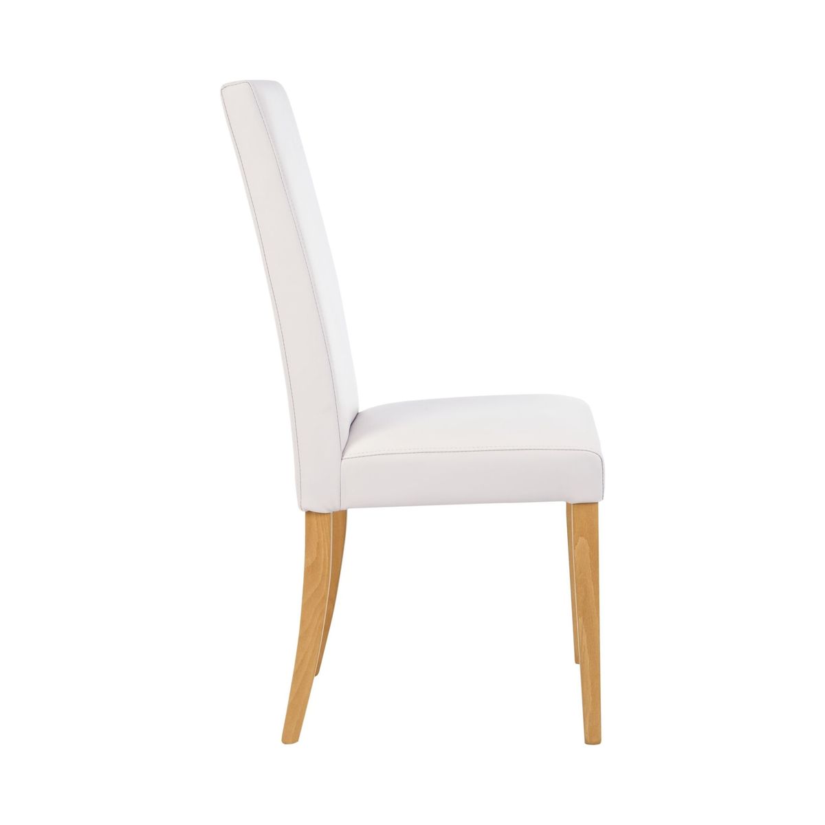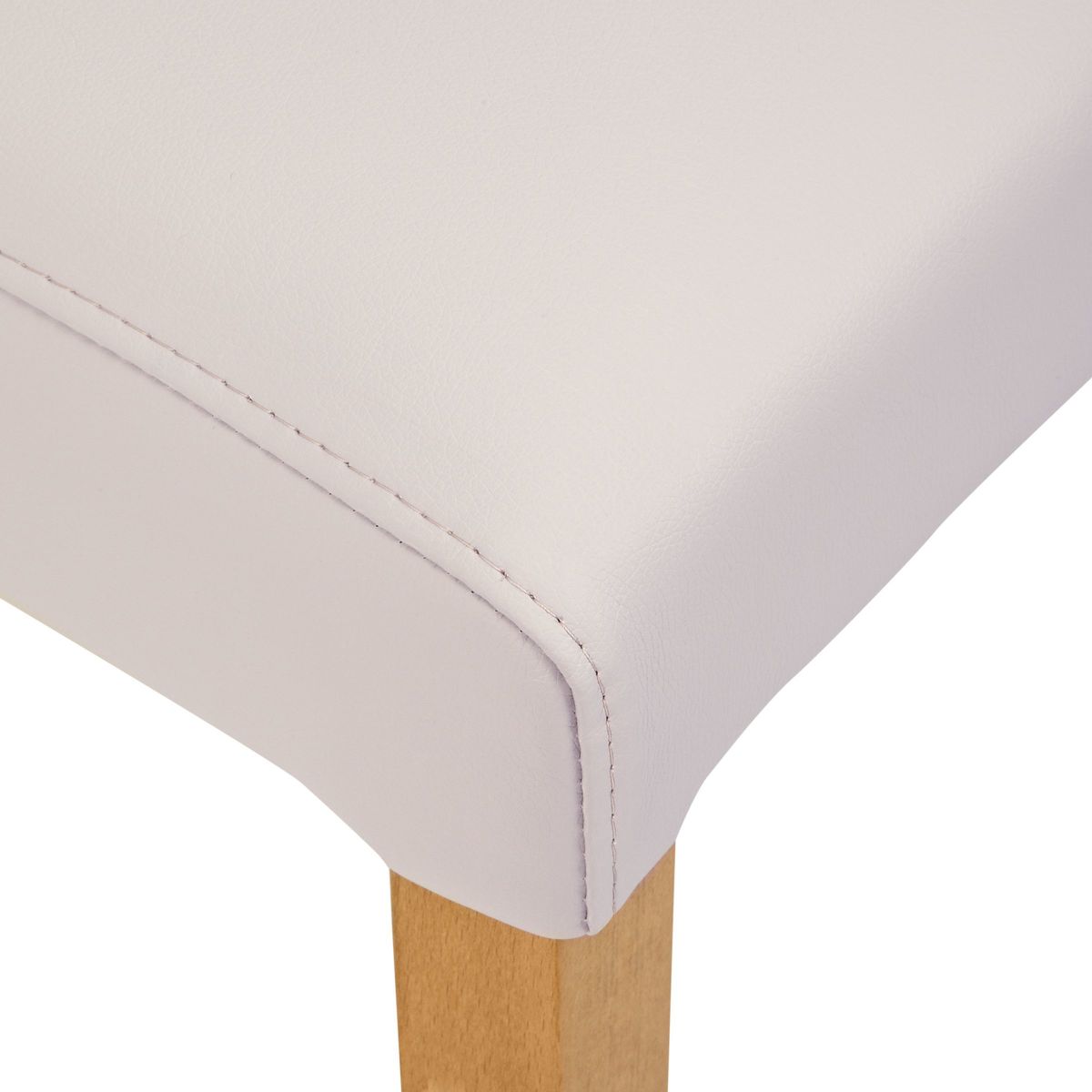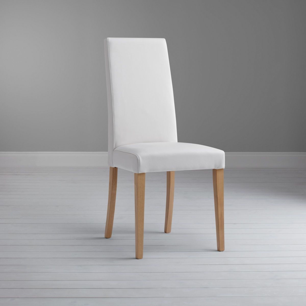 This stylish dining chair is upholstered in soft leather-effect fabric and is highly versatile. Solid beech legs with pale natural finish complete the look.