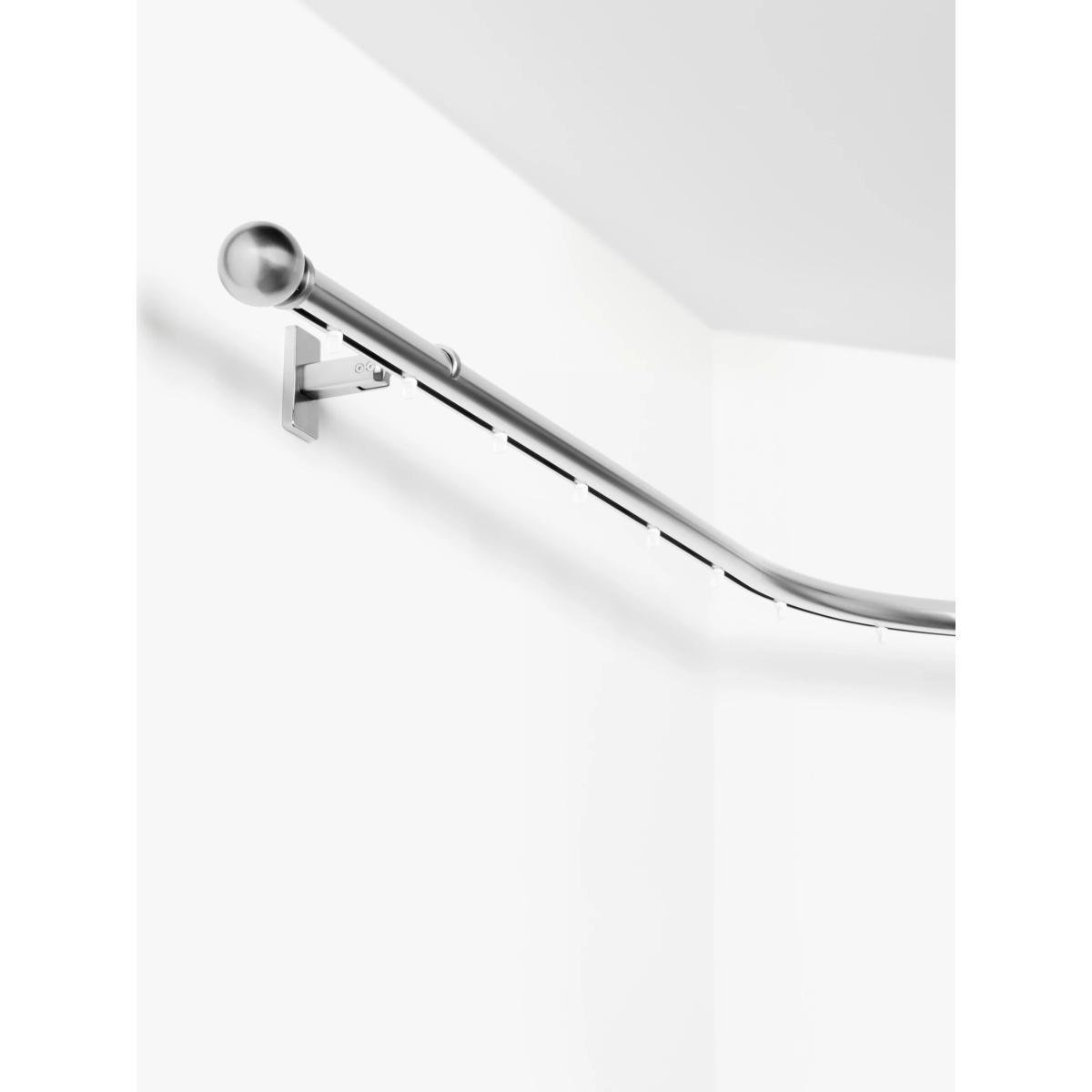 Made in the UK Revolution is our unique curtain pole/track system that can be customised to suit your home. It can be used as a curtain pole with rings or, by simply revolving the pole through 180°, as a decorative curtain track with gliders. The exact contents of your order will depend on the size and product you’ve selected. Poles are cut to your exact requirements and prices are per half metre of pole, so if you need a pole that’s 210cm in length you’ll need to order the 250cm size. If you require bends please look for the 4.8m size with 2 bends. When you’re ready simply place your order and a representative from our supplier will contact you by phone. This will on the same day if your order is placed before 5pm, or the following day if the order is placed after 5pm. Your curtain pole will be completed and delivered to you within 7 days of ordering. Alternatively, you can contact our supplier (Bradley) straight away by emailing johnlewis@bradleycollection.com Further information on this pole configuration: This configuration is sold as a curtain track with gliders Can be fixed to a wall or ceiling Hand drawn tracks contain no cording, which means you open and close your curtains by hand. We do not recommend these for use with delicate fabrics