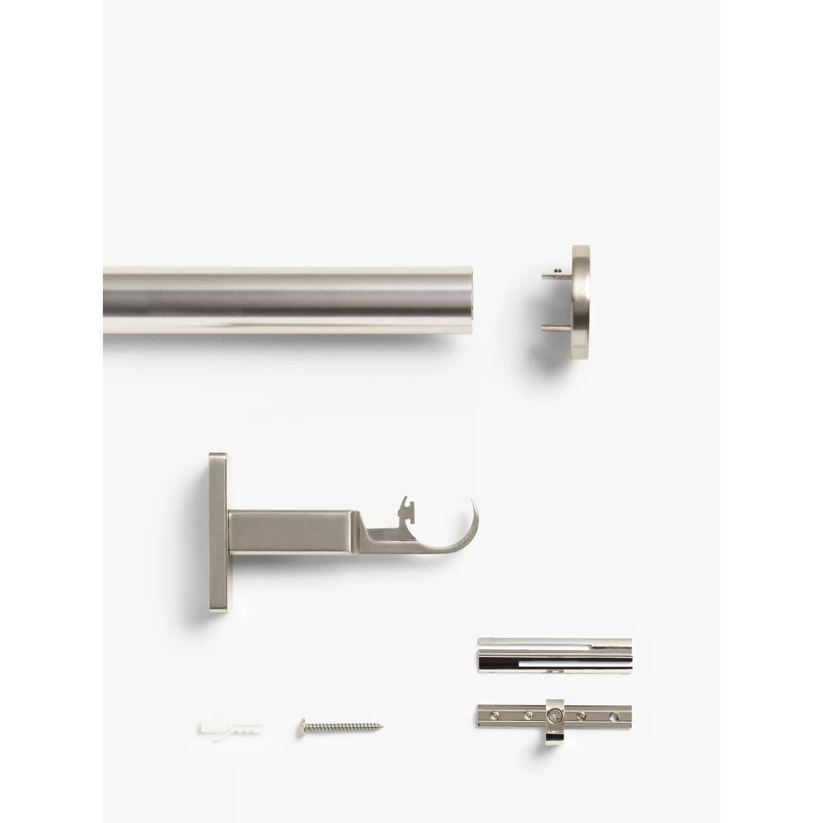 Made in the UK Revolution is our unique curtain pole/track system that can be customised to suit your home. It can be used as a curtain pole with rings or, by simply revolving the pole through 180°, as a decorative curtain track with gliders. The exact contents of your order will depend on the size and product you’ve selected. Poles are cut to your exact requirements and prices are per half metre of pole, so if you need a pole that’s 210cm in length you’ll need to order the 250cm size. If you require bends please look for the 4.8m size with 2 bends. When you’re ready simply place your order and a representative from our supplier will contact you by phone. This will on the same day if your order is placed before 5pm, or the following day if the order is placed after 5pm. Your curtain pole will be completed and delivered to you within 7 days of ordering. Alternatively, you can contact our supplier (Bradley) straight away by emailing johnlewis@bradleycollection.com Further information on this pole configuration: This configuration is sold as a plain curtain pole that can be used with eyelet curtains Can be fixed to a wall or ceiling Hand drawn poles contain no cording, which means you open and close your curtains by hand. We do not recommend these for use with delicate fabrics