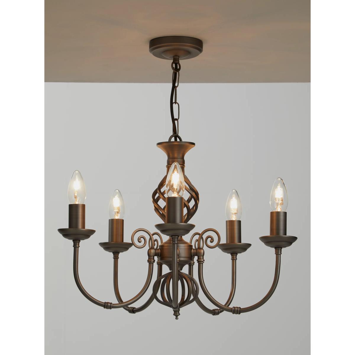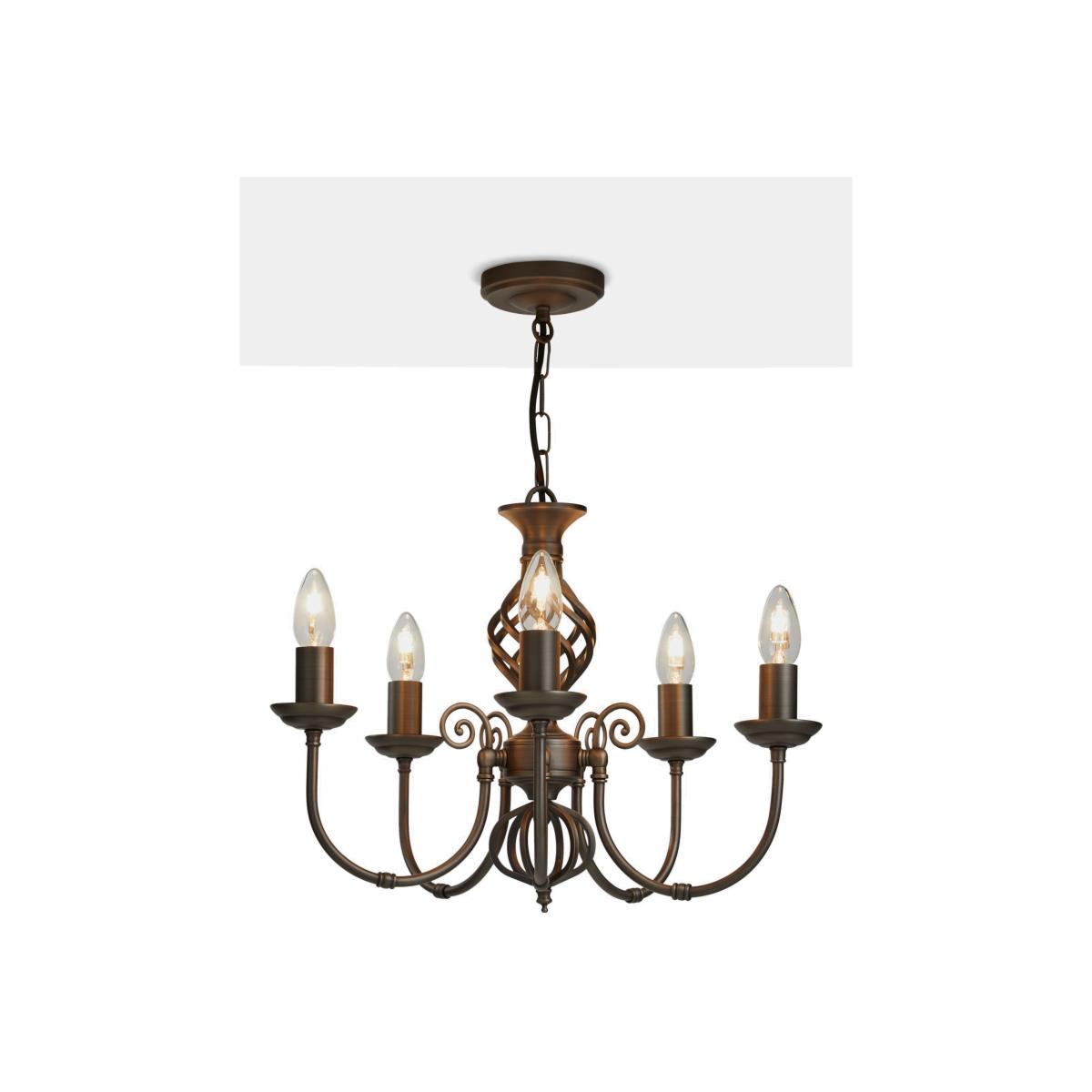 The Malik ceiling light offers a modern take on a traditional chandelier style. Made from high-quality steel in an antique finish, its designed with five arms to provide an impressive dispersal of light around your room. The chain-style adjustable flex lends a vintage-inspired accent and allows you to fit the light perfectly in your space. Easy to install, its timeless design will make an impressive feature in any room.