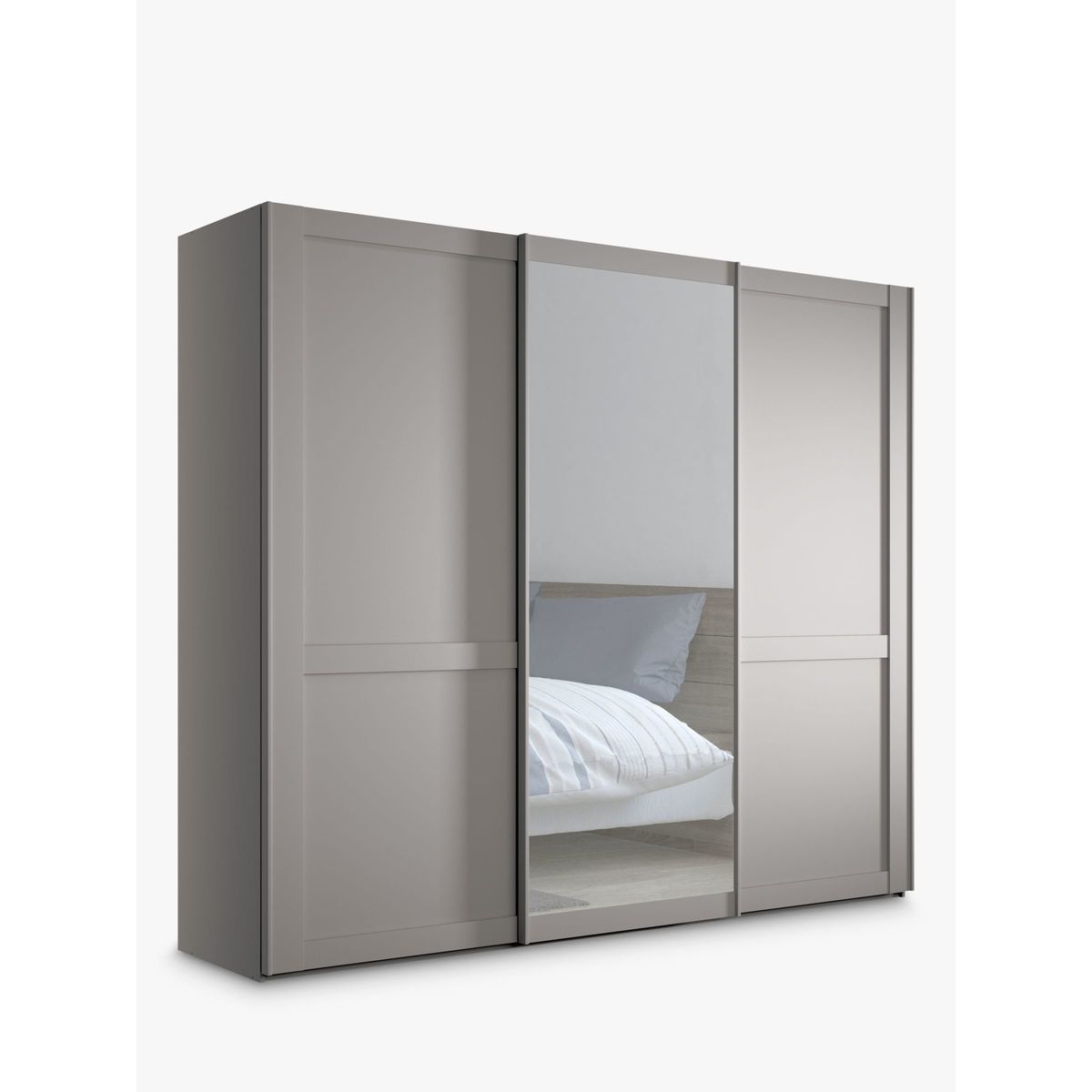 The elegant and classic look of our Marlow range suits most decor. Versatile and practical as a bedroom storage solution, the range is available in a choice of finishes with sliding or hinged doors, and either with or without mirrors. The exterior is complemented with an attractive cornice detail at the top and door handles in a vintage pewter finish. This wardrobe's middle sliding door has an exterior mirror. The interior has two double and a single compartment with two shelves and a hanging rail in each, all of which are fully adjustable to suit your requirements. This product is delivered and assembled by the supplier for your convenience. Extra internal and external accessories are available to purchase separately. Please see below for compatible items. Compatible accessories: Treeline - Set of 3 shelves, width 80.1cm, Product Code: 80323603 Hanging rail, width 80.1cm, Product Code: 80323607 Treeline - Set of 2 internal drawers with glass front, width 80.1cm, Product Code: 80323611 Pair of LED external lights, Product Code: 80323614 Set of 3 LED external lights, Product Code: 80323615 Want to see it first? You may want to see and get a feel for the furniture in one of our shops before ordering. We'll be able to tell you where the range you'd like to view is on display. We like it because it is delivered and assembled by the supplier in your home for ease and peace of mind.