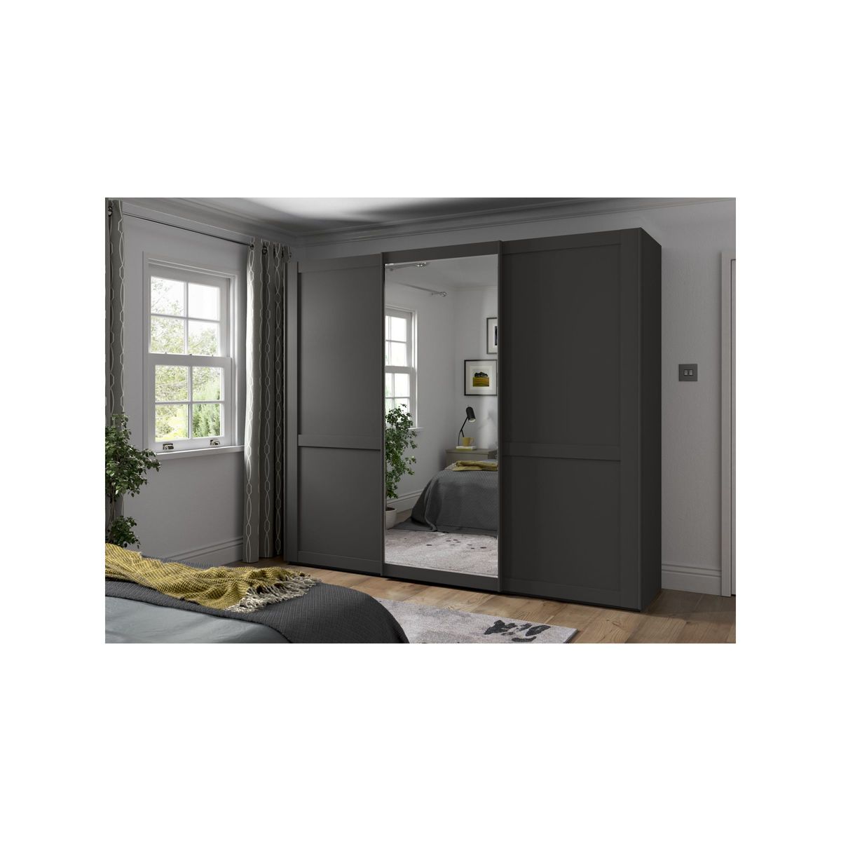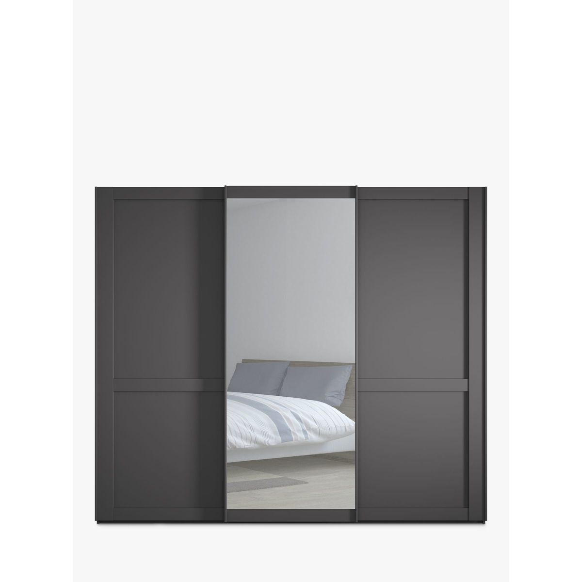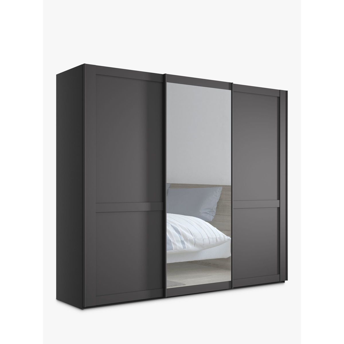 The elegant and classic look of our Marlow range suits most decor. Versatile and practical as a bedroom storage solution, the range is available in a choice of finishes with sliding or hinged doors, and either with or without mirrors. The exterior is complemented with an attractive cornice detail at the top and door handles in a vintage pewter finish. This wardrobe's middle sliding door has an exterior mirror. The interior has two double and a single compartment with two shelves and a hanging rail in each, all of which are fully adjustable to suit your requirements. This product is delivered and assembled by the supplier for your convenience. Extra internal and external accessories are available to purchase separately. Please see below for compatible items. Compatible accessories: Treeline - Set of 3 shelves, width 80.1cm, Product Code: 80323603 Hanging rail, width 80.1cm, Product Code: 80323607 Treeline - Set of 2 internal drawers with glass front, width 80.1cm, Product Code: 80323611 Pair of LED external lights, Product Code: 80323614 Set of 3 LED external lights, Product Code: 80323615 Want to see it first? You may want to see and get a feel for the furniture in one of our shops before ordering. We'll be able to tell you where the range you'd like to view is on display. We like it because it is delivered and assembled by the supplier in your home for ease and peace of mind.