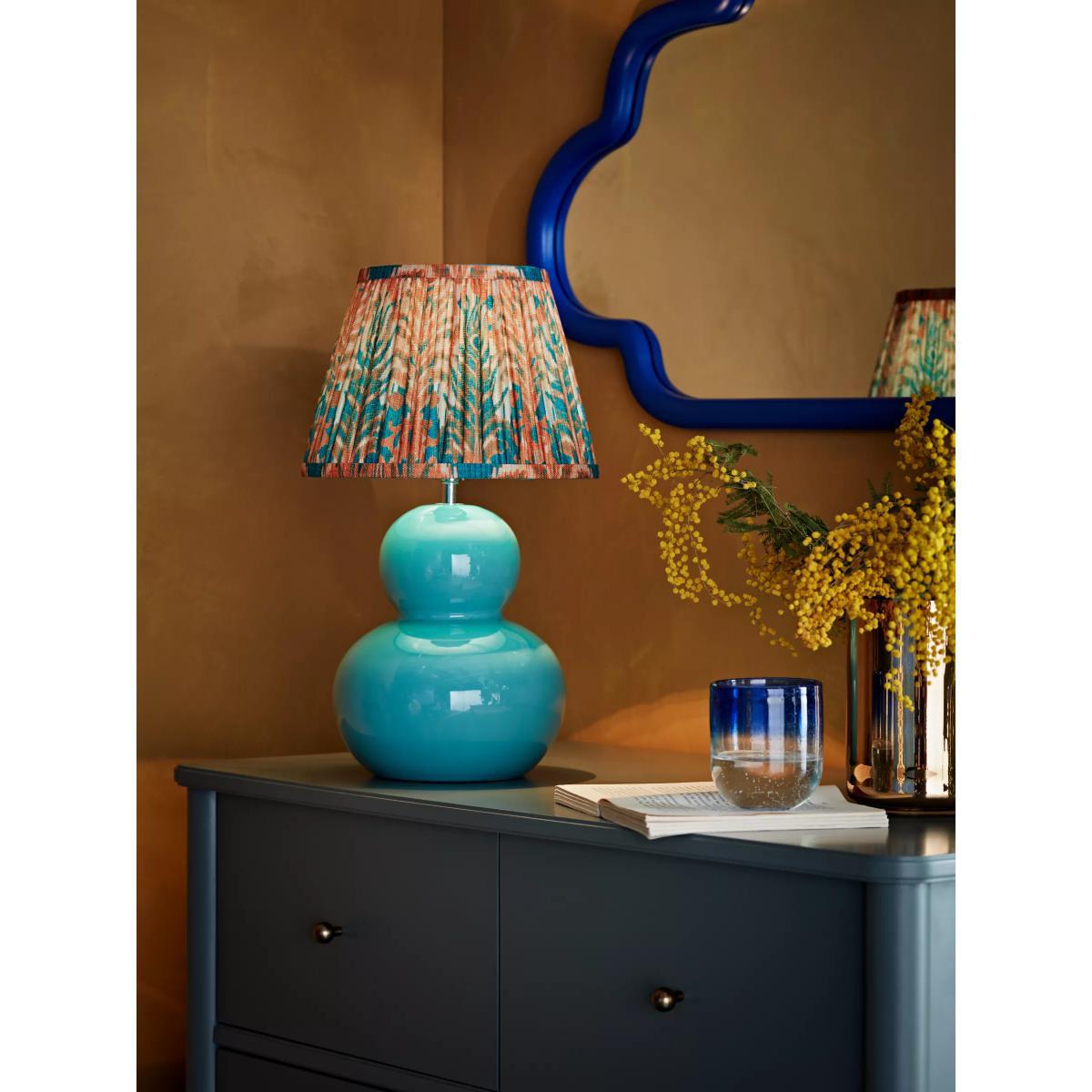 I love this lamp base for its sculptural, contemporary shape and its striking colour. Its rounded form adds a touch of softness and interest, making it versatile enough to work well in both modern and eclectic interiors. It’s especially effective paired with calm, neutral shades for a statement piece or with bold, patterned shades to enhance its playful personality. For styling tips, consider placing it on a side table or console alongside complementary ceramics or metallic accents to create a curated, layered look. Keep in mind that it works well with understated lampshades to highlight its distinctive shape without overwhelming the space.
