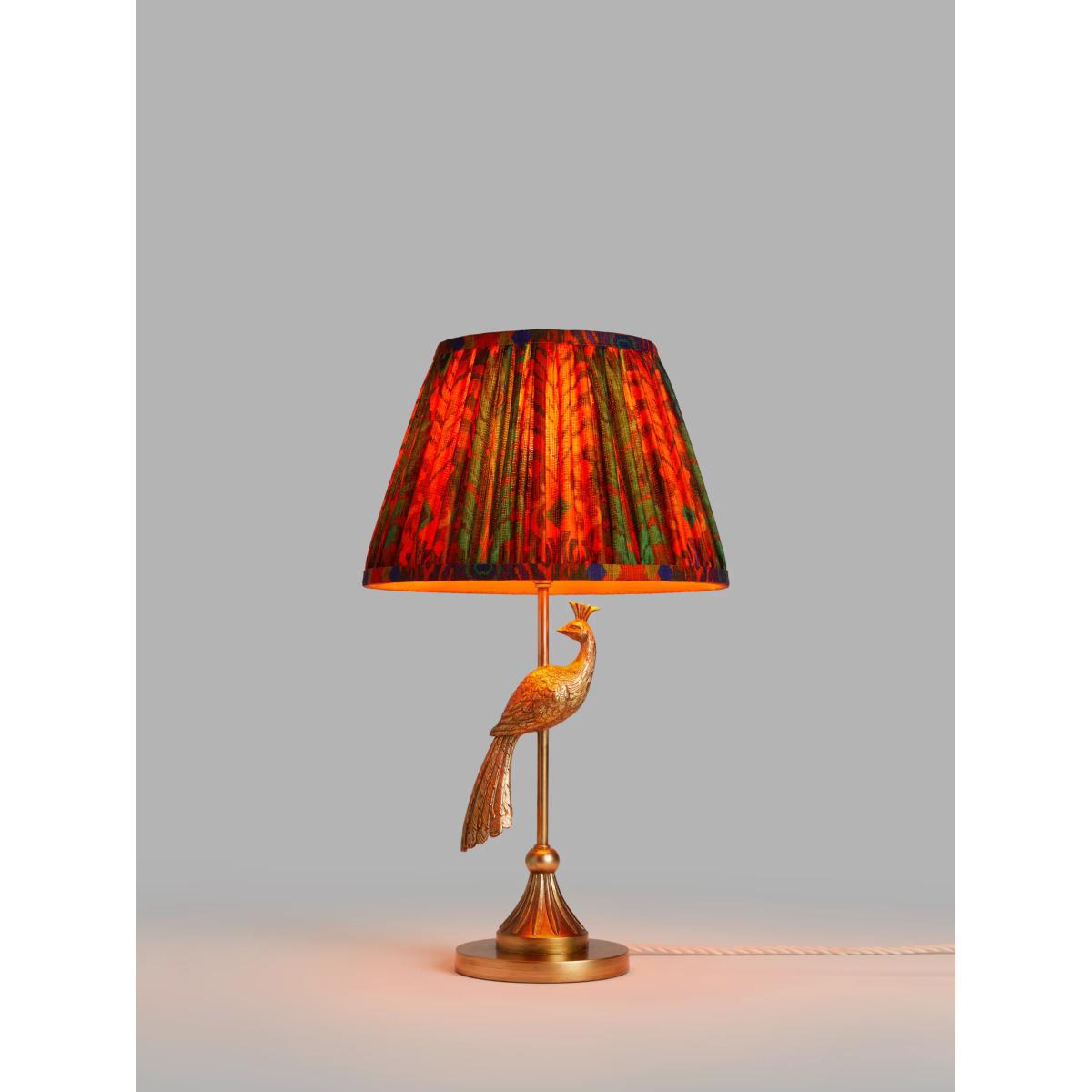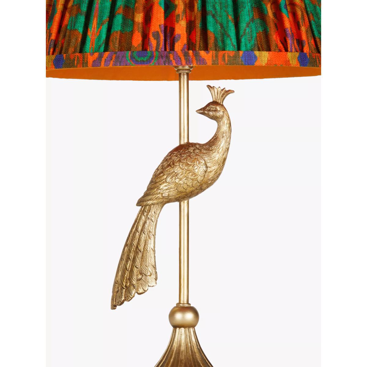 Nature's riotous beauty, brought home An exclusive collaboration with Matthew Williamson, master of colour and pattern. The energy of the great outdoors, beautifully captured. We've put together Matthew Williamson's distinctive peacock lamp base, which of course works best with the Peacock tapered lampshade, diameter 25.5cm. Offering a fun way to dress up your space with character and colour, the base is made from polyresin and metal in an aged gold finish and the faux linen lampshade is gathered and pleated by hand. Together, this creates a bold accessory for your home, ready for all your guests to comment on. Lamp base dimensions: H38 x Dia.14.5cm Lampshade dimensions: H18 x Dia.25.5cm