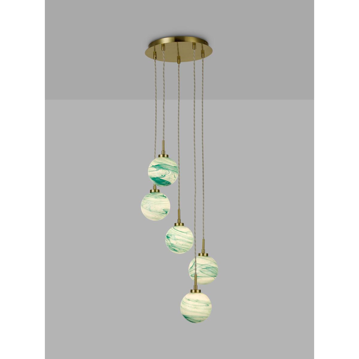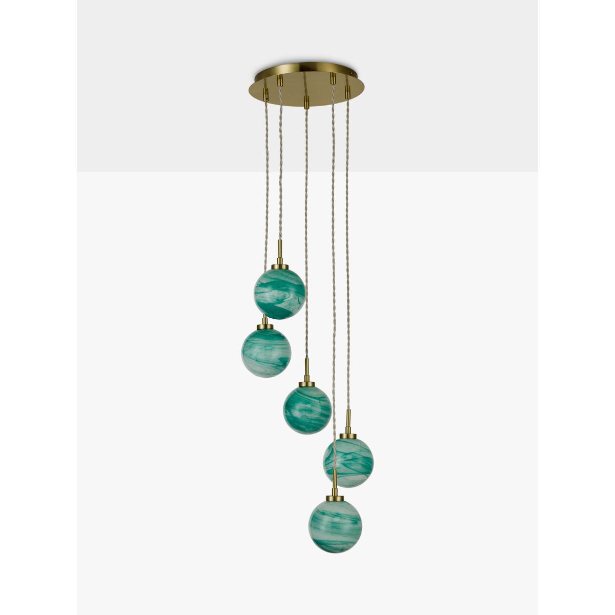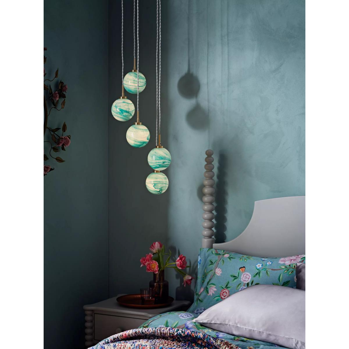 Nature's riotous beauty, brought home An exclusive collaboration with Matthew Williamson, master of colour and pattern. The energy of the great outdoors, beautifully captured. This cluster ceiling light will help you achieve an instant injection of character at home. Its five staggered pendants are skillfully handmade from art glass at high temperatures, with richly coloured swirls against a contrast background. Each shade has a unique colour variation and pattern which creates a really distinctive look. Five LED bulbs are required and when illuminated, this light offers a warm and eye-catching glow, making it a brilliant option over a dining table or in a stairwell.