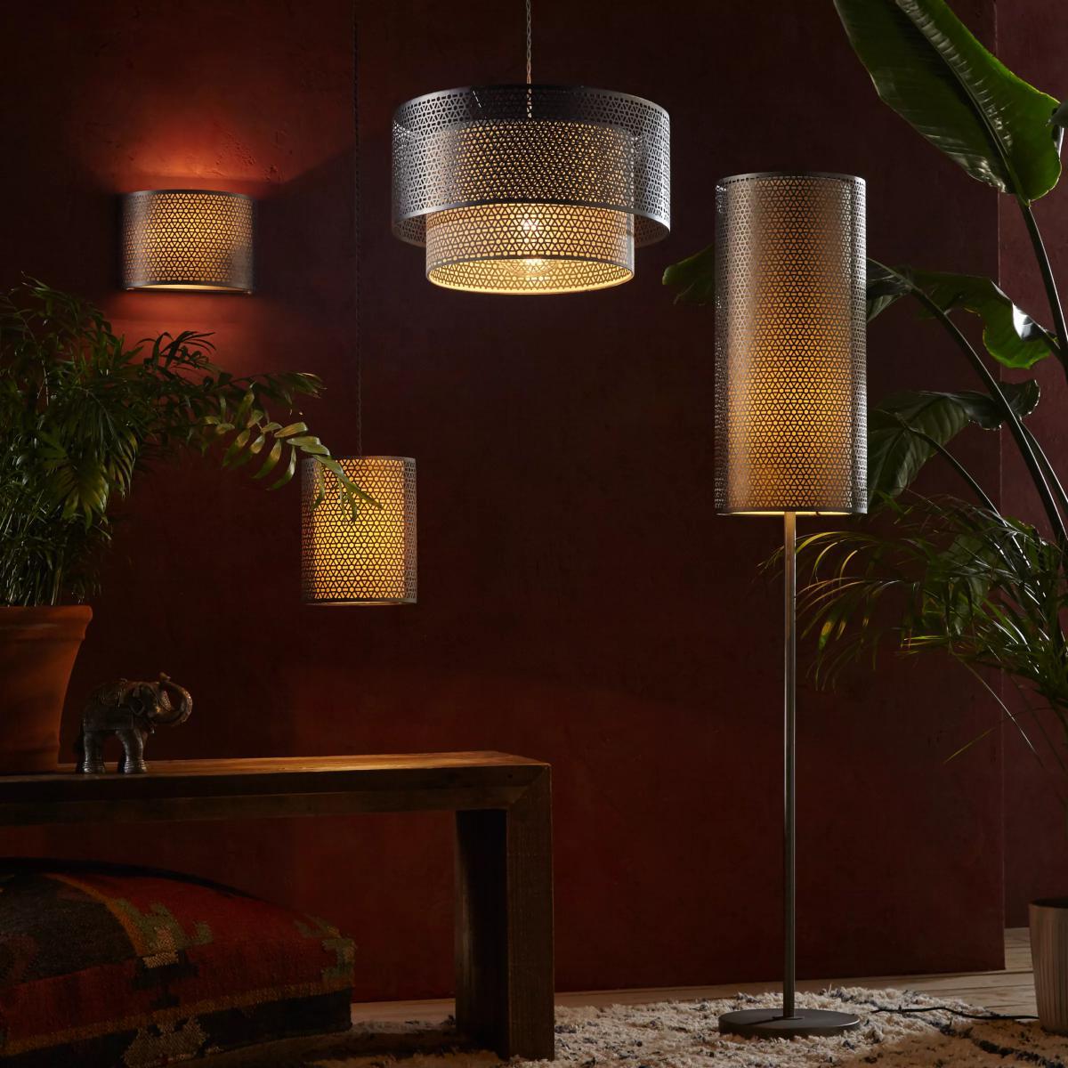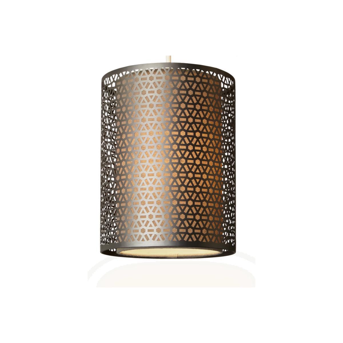 The eclectic Meena pendant light features a brushed, dark nickel finish complete with a unique laser cut pattern. The inner fabric shade assists in creating a beautiful light effect around your room. The shade is easy to fit to any ceiling fitting. Easy to fit, this ceiling shade will seamlessly attach to your existing light fitting for an instant refresh to your space.