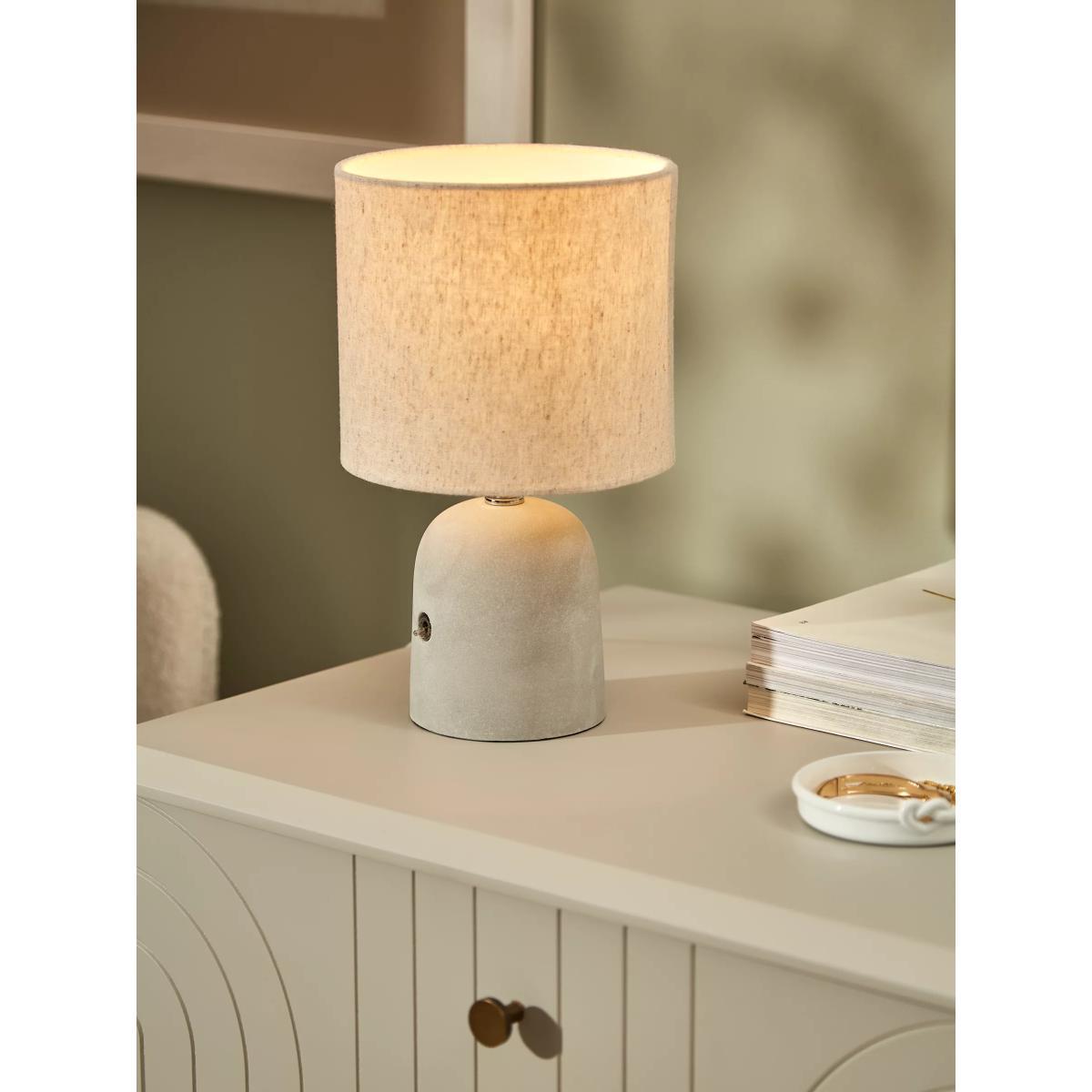 The dome-shaped base of this table lamp is made from concrete and finished without any mould or line marks which gives it a wonderfully sleek and smooth look. We've paired it with a linen shade to enhance a warm glow of light in your space and there's a simple toggle switch on the base for easy operation. Good to know As the base is made from concrete, there may be some slight colour variations between your lamp and the images shown. This distinctive quality means that your lamp will have a unique look.