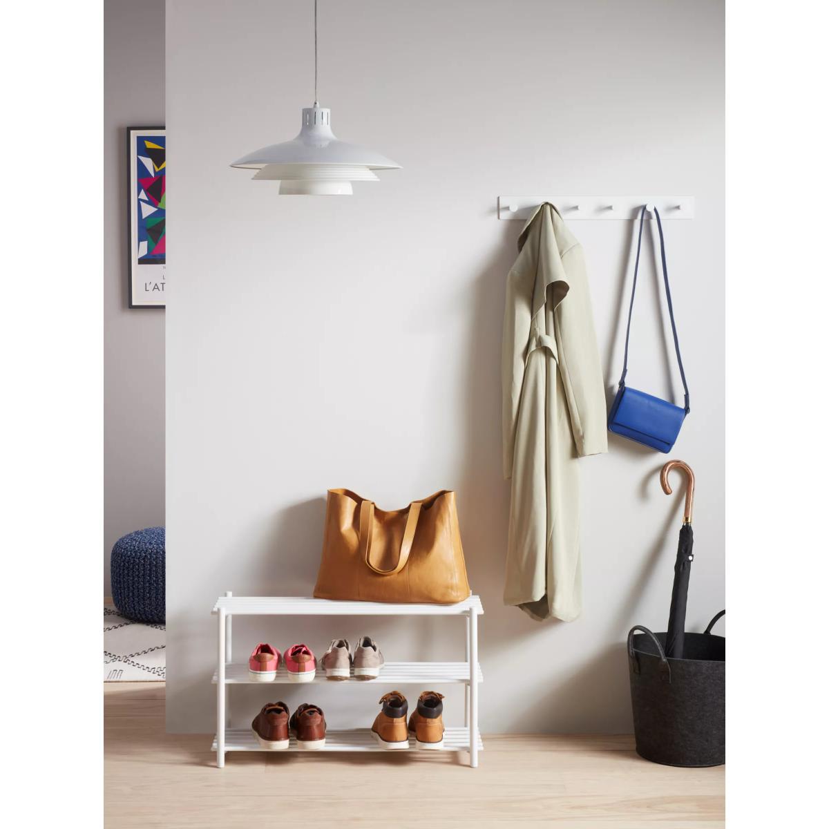 I really like the simplicity of this wall-mounted hook rack - it’s a practical addition that suits modern and minimalist interiors perfectly. The white finish allows it to blend seamlessly with a variety of colour schemes, making it versatile for hallways, cloakrooms, or even inside a laundry room. It works well in contemporary spaces but can also provide a subtle, clean contrast in more eclectic or Scandi-inspired interiors. For styling tips, consider pairing it with a mirror or a small shelf above for an organised, clutter-free look. Installing it at different heights can also help differentiate the space, with lower hooks perfect for bags and children’s coats, and higher ones for everyday outerwear. It’s a straightforward yet effective way to keep things tidy while adding understated style.