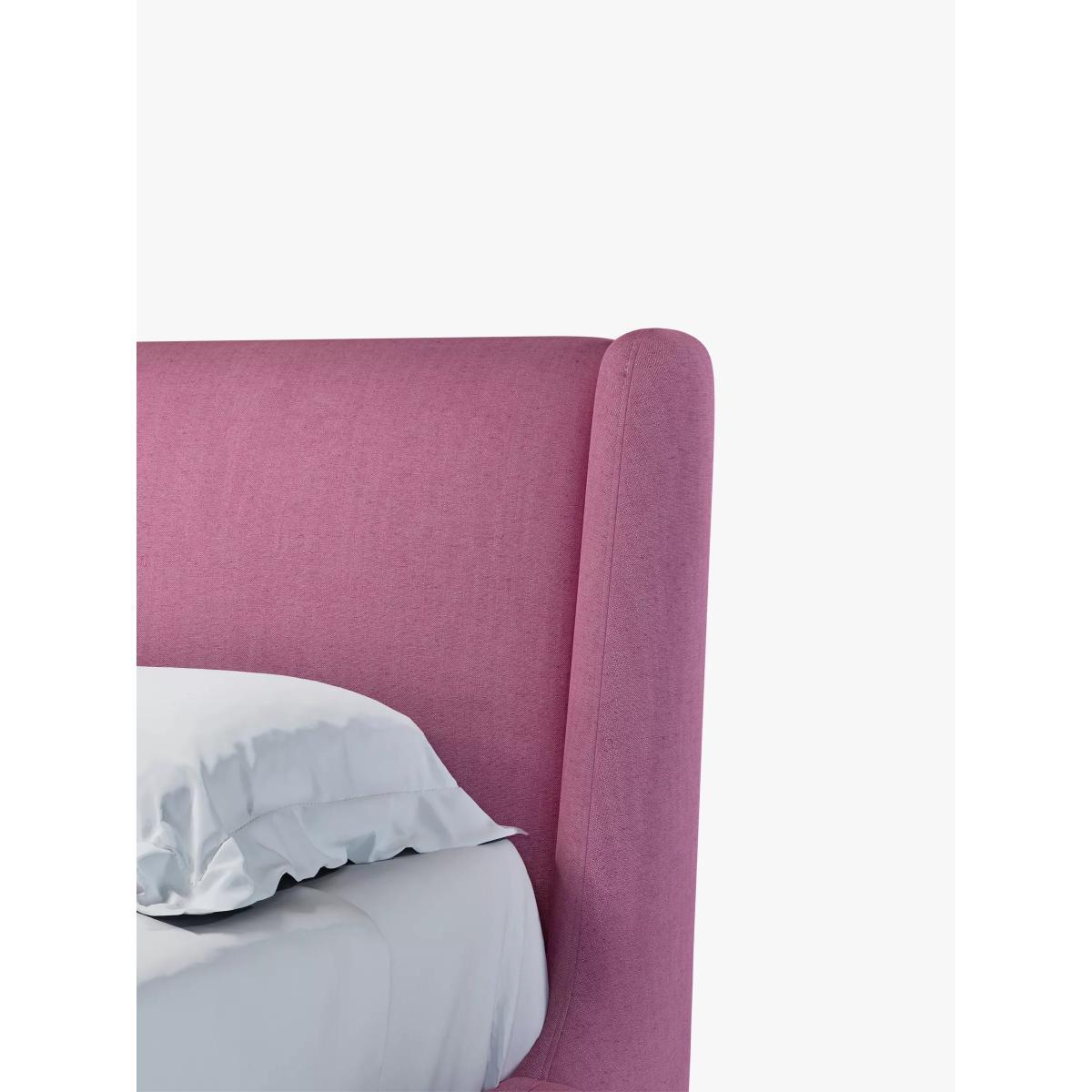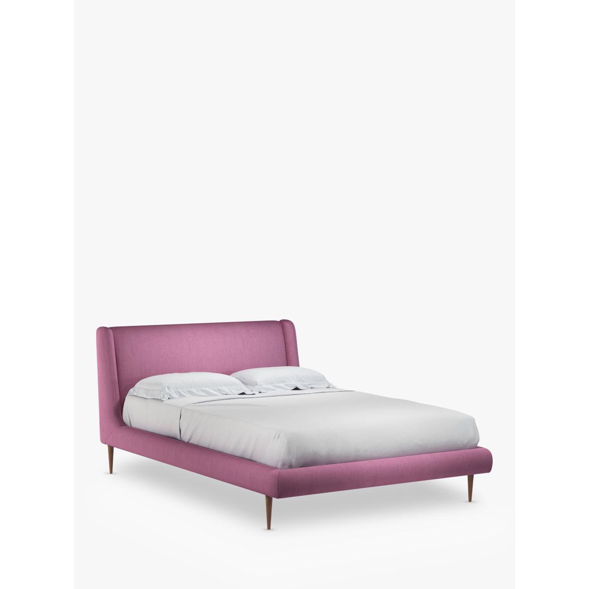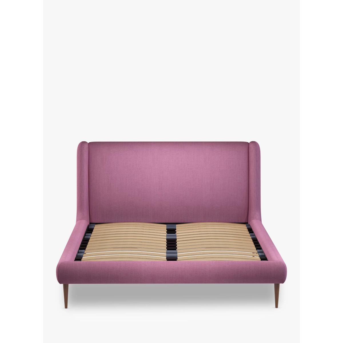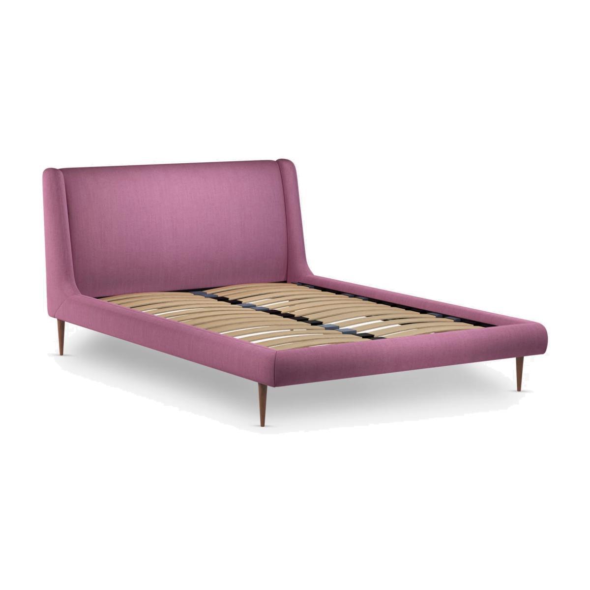 Our Mid-Century Sweep bed frame has a sleek, retro-inspired shape. Its streamlined profile marries soft curves and sharp lines, resting on tapered wooden legs. Sprung slats in the base provide additional support for you and your mattress. Built with Smart Slats This bed frame is designed with wider slats at the shoulders, lumbar and feet. They provide maximum support for you and your mattress so that you experience perfect spinal alignment while you sleep. The standard slat caps are black so we have added grey slat caps to ensure that you know where to place the wider slats. Our Band A fabric, Saga is woven with man-made fibres, making it exceptionally durable and versatile. Our Band A fabric, Topaz is woven to offer a linen-effect feel, and available in a versatile palette. Our Band B fabric, Erin is woven with man-made fibres to create a beautifully soft yarn. This tactile, velvet-style chenille fabric exhibits a two-tone look in different lights. Our Band B fabric, Opulence offers a luxurious, soft-touch. This velvet-feel fabric is available in a rich colour palette. Our Band B fabric, Mole is a woven wool-blend that's soft and cosy. Pilling and bobbling may occur naturally over time. Our Band B fabric, Relaxed Linen is durable, resilient and versatile, woven from man-made and natural fibres Want to see it first? You may want to see and get a feel for the furniture in one of our shops before ordering. We'll be able to tell you where the range you'd like to view is on display.
