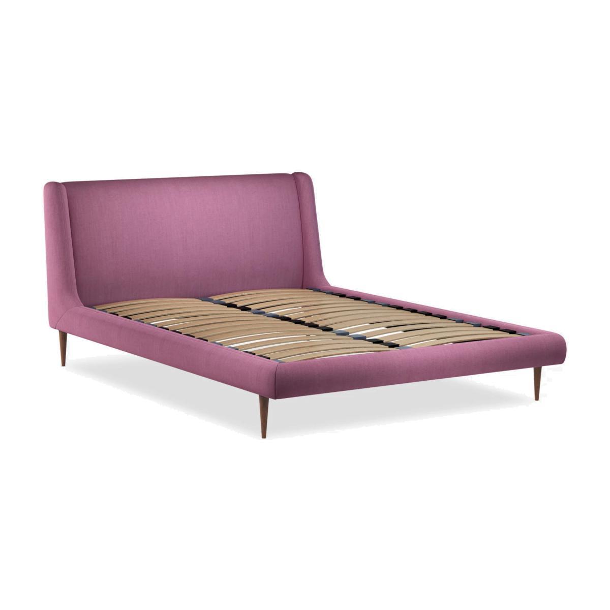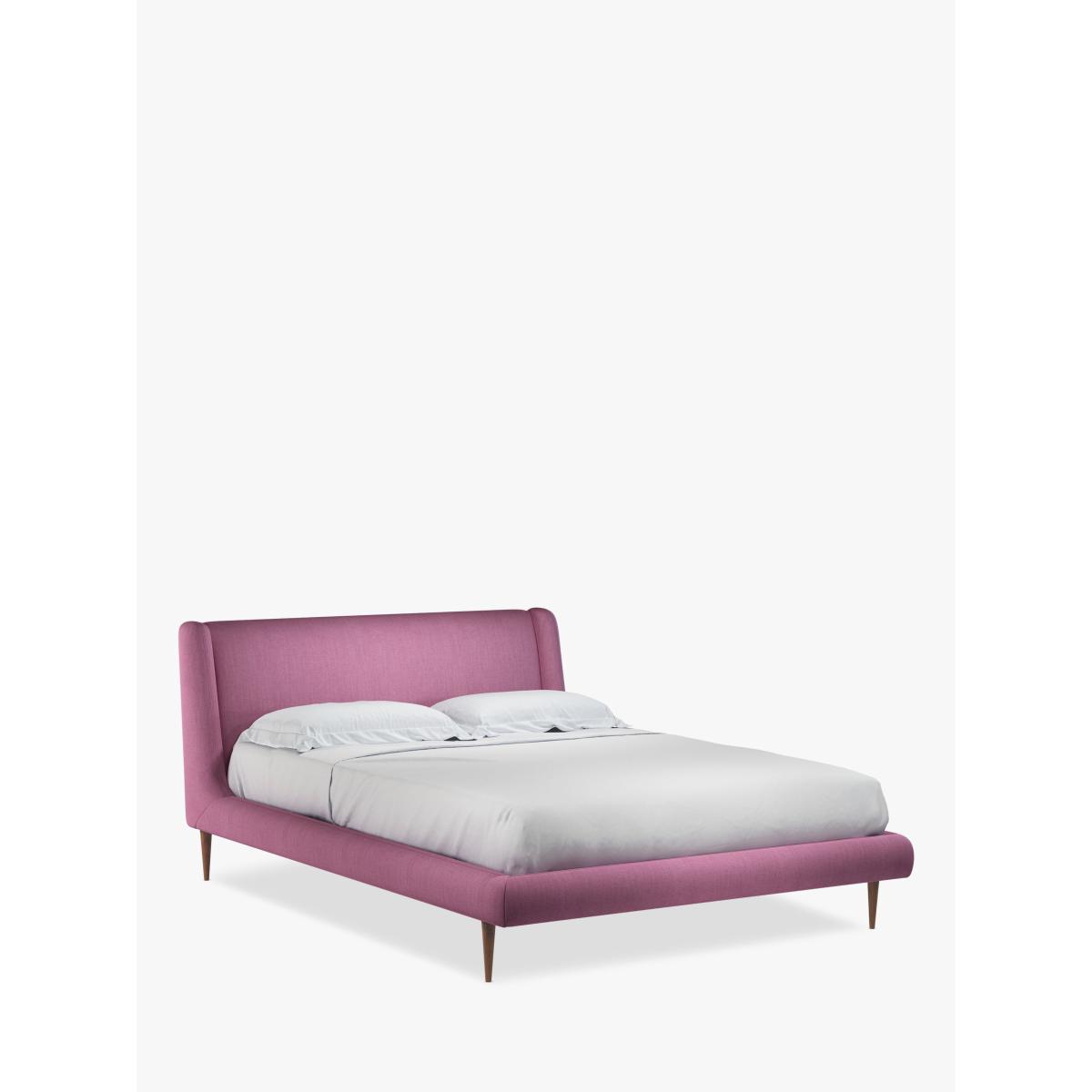 Our Mid-Century Sweep bed frame has a sleek, retro-inspired shape. Its streamlined profile marries soft curves and sharp lines, resting on tapered wooden legs. Sprung slats in the base provide additional support for you and your mattress. Built with Smart Slats This bed frame is designed with wider slats at the shoulders, lumbar and feet. They provide maximum support for you and your mattress so that you experience perfect spinal alignment while you sleep. The standard slat caps are black so we have added grey slat caps to ensure that you know where to place the wider slats. Our Band A fabric, Saga is woven with man-made fibres, making it exceptionally durable and versatile. Our Band A fabric, Topaz is woven to offer a linen-effect feel, and available in a versatile palette. Our Band B fabric, Erin is woven with man-made fibres to create a beautifully soft yarn. This tactile, velvet-style chenille fabric exhibits a two-tone look in different lights. Our Band B fabric, Opulence offers a luxurious, soft-touch. This velvet-feel fabric is available in a rich colour palette. Our Band B fabric, Mole is a woven wool-blend that's soft and cosy. Pilling and bobbling may occur naturally over time. Our Band B fabric, Relaxed Linen is durable, resilient and versatile, woven from man-made and natural fibres Want to see it first? You may want to see and get a feel for the furniture in one of our shops before ordering. We'll be able to tell you where the range you'd like to view is on display.