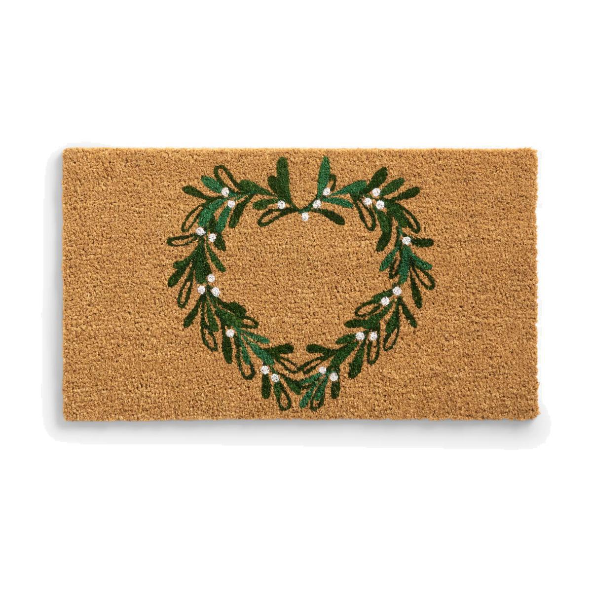 Add some romantic and festive charm to your porch or front door this Christmas with our charming mistletoe heart door mat.