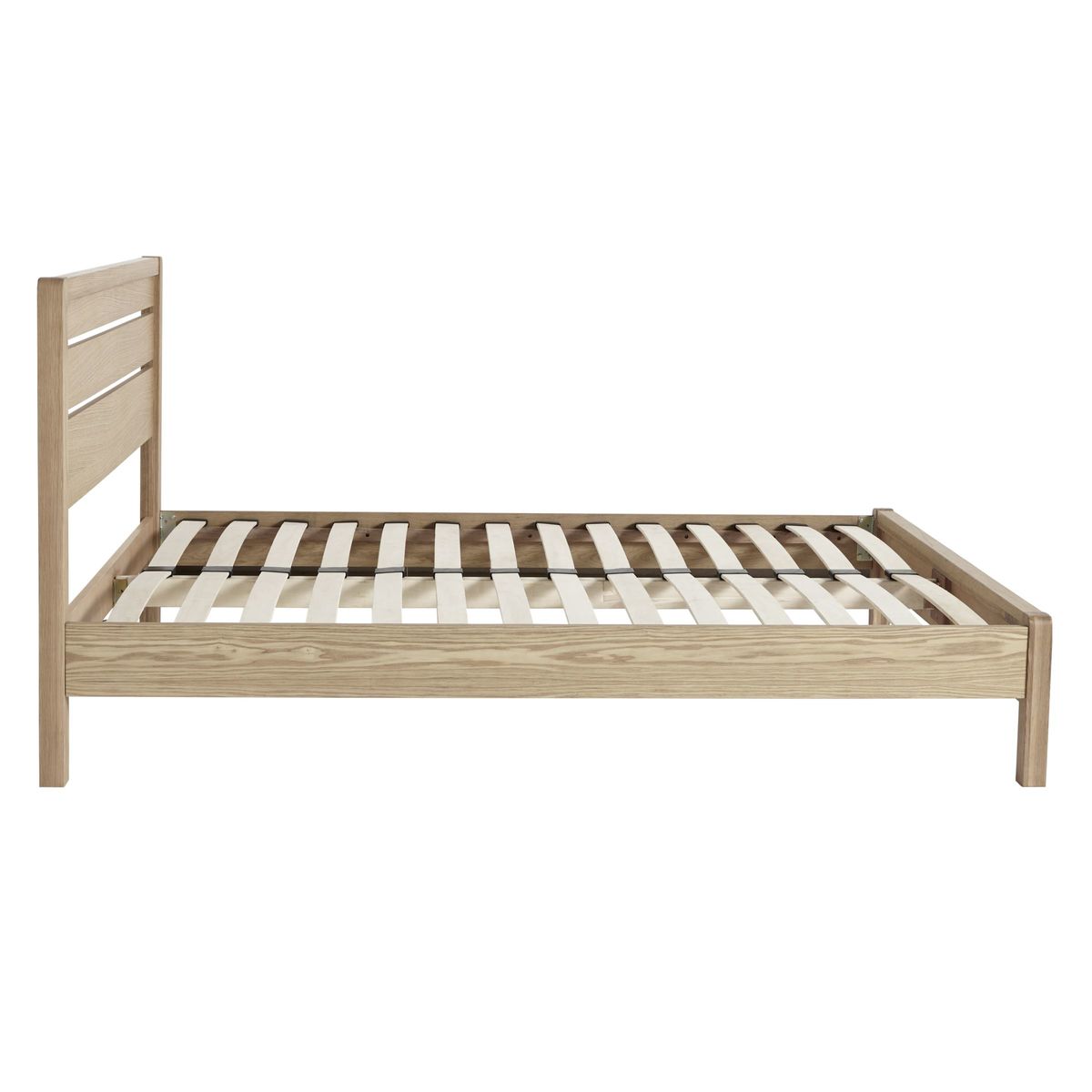 This stylish bedstead features a clean, modern design and a versatile oak finish. Its sprung slats will provide added support in conjunction with a quality mattress, helping you get a good night's sleep. With a simple and elegant design, the Montreal bed lends itself well to a multitude of interior styles. Pair with a colourful geometric print duvet set to channel this season's prolific Scandi trend, or add soft velvet and faux fur accessories for a look that oozes boutique hotel chic. The mattress pictured is not included with this bed. Please note: not all our ranges are on display in our shops. Have you thought about a new mattress? Shop.