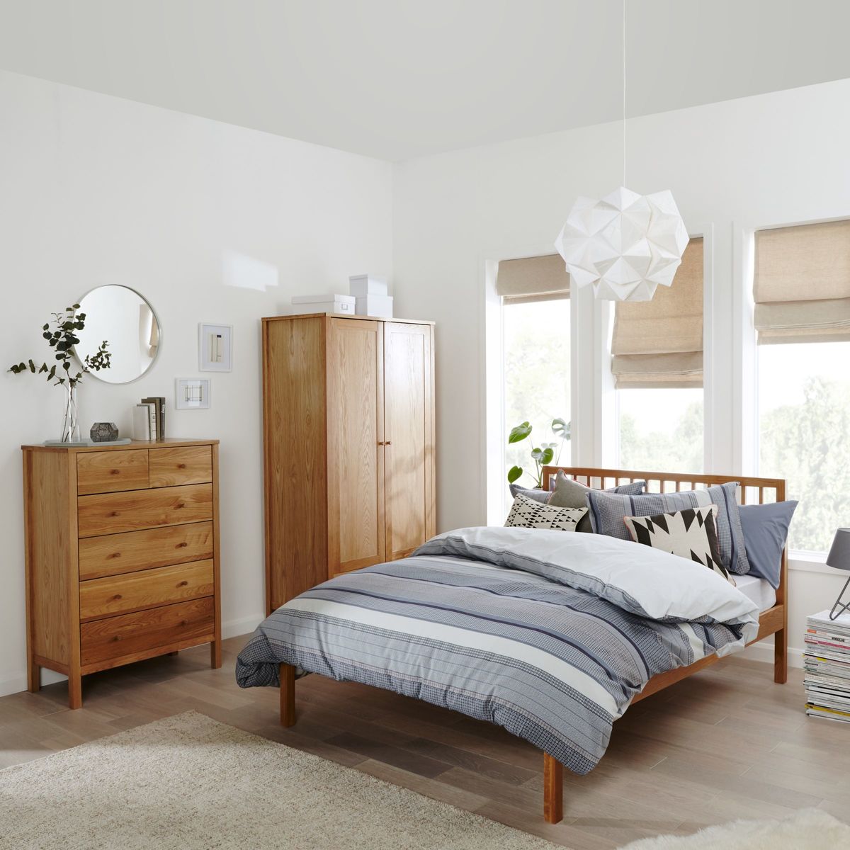 The John Lewis & Partners Morgan bed in oak offers a great balance of form and function, making it versatile for a variety of interiors. Its clean lines and natural wood finish give it a modern yet timeless appeal, especially suited to contemporary, Scandinavian, or minimalist schemes. I love pairing this bed with crisp white linens and soft textures like chunky throws or layered cushions to soften the look. For practical styling tips, consider layering with matching or contrasting wooden bedside tables to enhance its natural oak tones, and add directional lighting or statement lamps for a cosy atmosphere. Its sturdy construction and understated design make it a flexible piece that can adapt to changing decor trends while providing a solid foundation for a stylish bedroom.