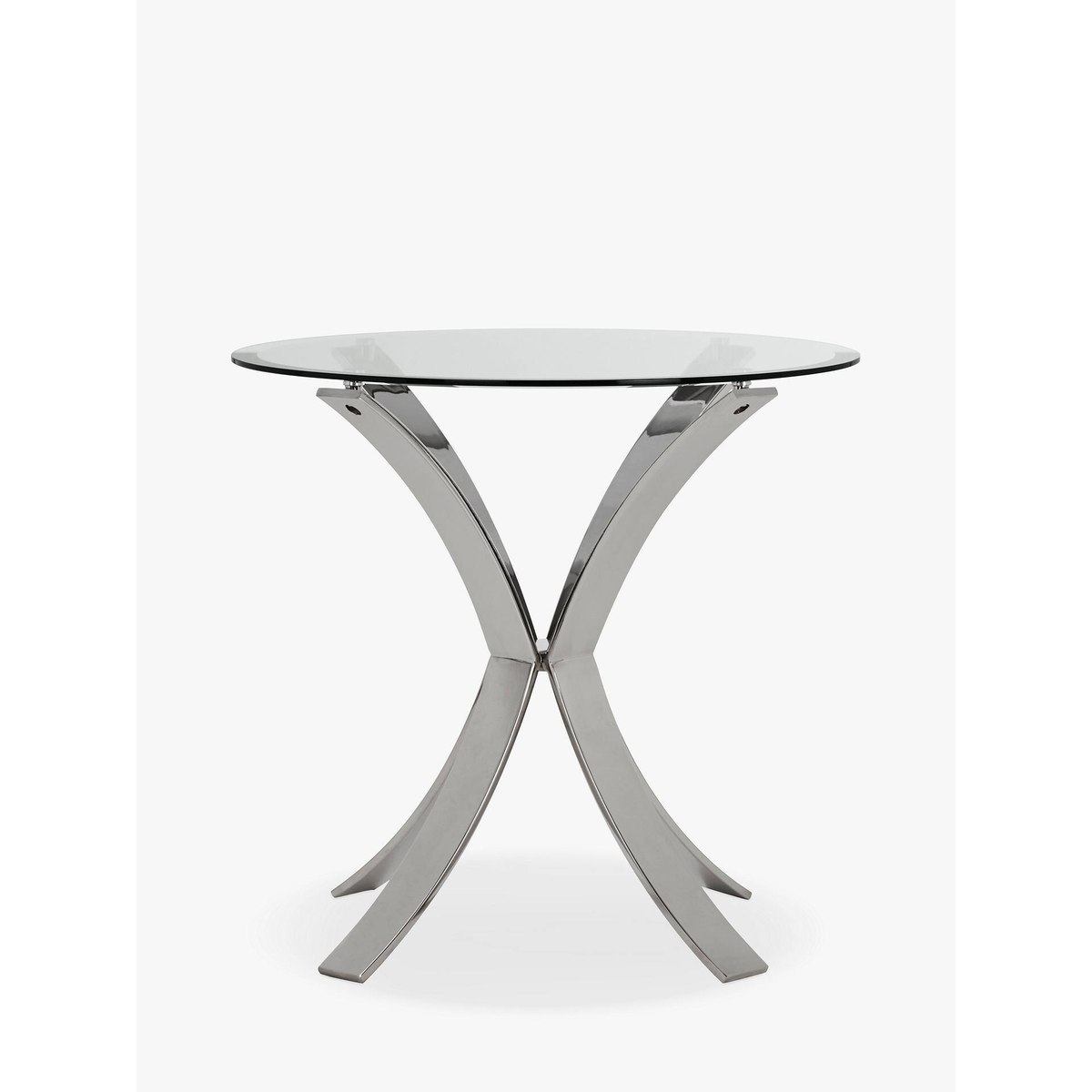 Our sophisticated tall side table is an elegant choice for all manner of interior settings. It features sleek curved legs in durable stainless steel, and a bevelled edged glass top which instantly lends rooms a lighter, brighter feel. The modern materials used offer a neutral and versatile look which blends effortlessly with your existing decor. The height makes it ideal for use as a bedside table or side table beside a sofa or armchair, while the generous size of the top provides plenty of space for decorative pieces. The table can handle a maximum load of 10kg.