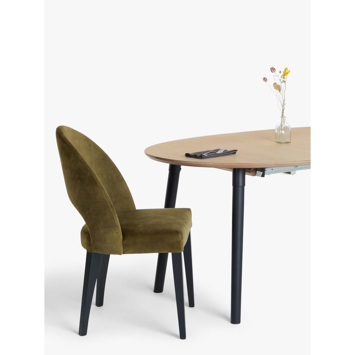 Upholstered in a soft velvet fabric, our Moritz dining chair is a sophisticated and supportive seating option. Robust and responsibly sourced beech wood legs provide a sturdy base, while the gently curved back rest and plump seat cushion ensures a comfortable sit. This chair is easy to pair with both wooden and glass-top dining tables. About our manufacturing partner Our manufacturing factory is based in Italy, in a district where chairs have been manufactured since the end of 1800. It's among very few in the world who monitor their production process following an end-to-end cycle, that's completed according to strict FSC certification. This ensures the chair is responsibly made, from cutting the trunk to the finished product. By choosing this product you are supporting responsible management of the world's forests. The Forest Stewardship Council® (FSC®) is a global, not-for-profit organisation that helps take care of forests and the people and wildlife that call them home. To learn more, visit. Want to see it first? You may want to see and get a feel for the furniture in one of our shops before ordering. We'll be able to tell you where the range you'd like to view is on display.