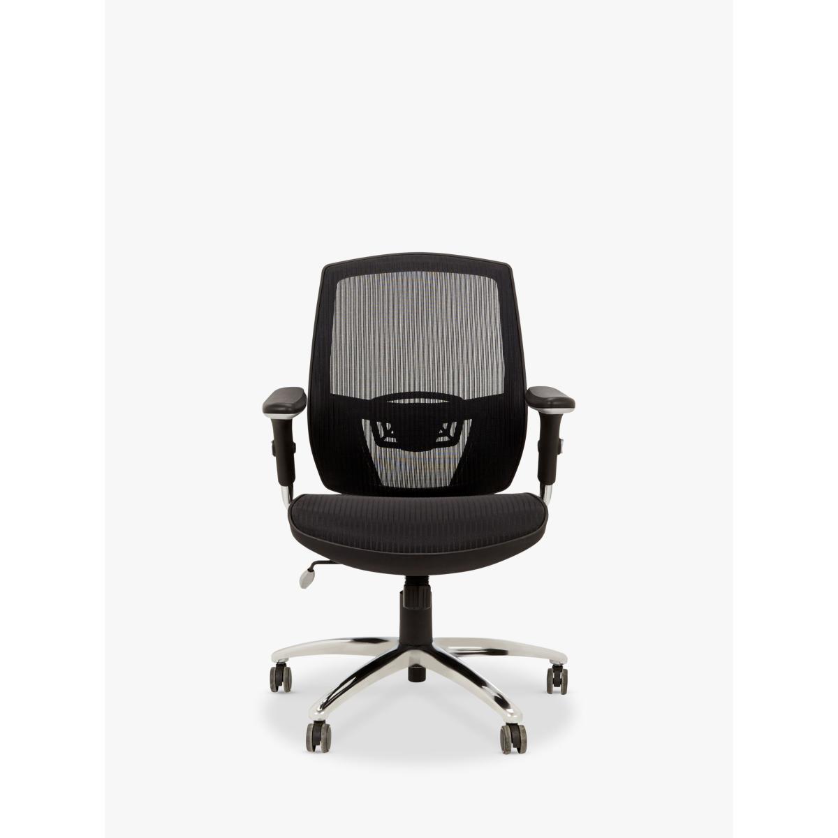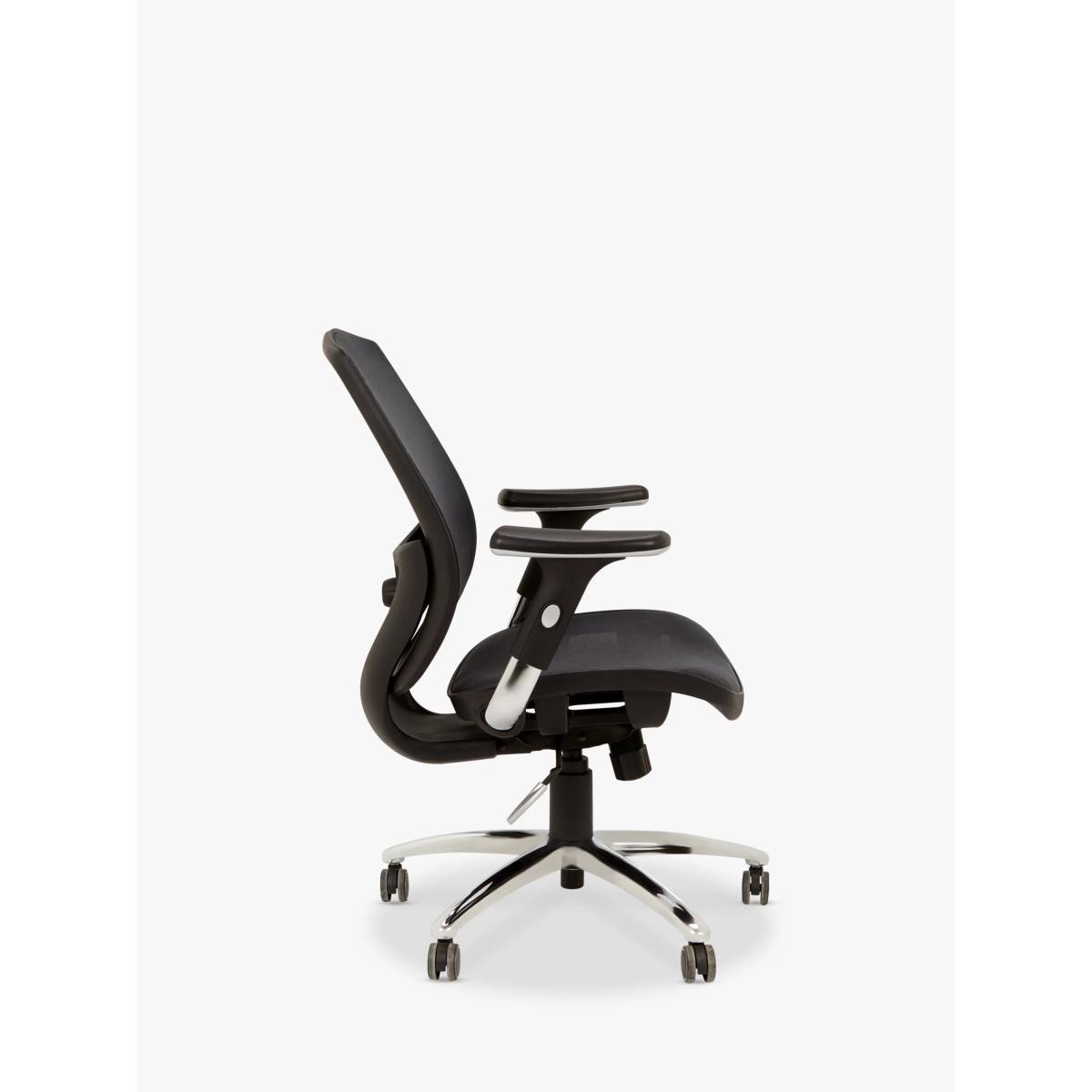 This ergonomic office chair is designed with a form-comforting mesh backrest, which offers perfect lumbar support without external devices or manual adjustments. The swivel seat is height adjustable to suit each user and the metal base in a polished finish makes it a smart option for your work environment. Protect your floor While this chair is suitable for the flooring specified, we suggest using floor pads or mats where possible, for added protection to your flooring and furniture. Want to see it first? You may want to see and get a feel for the furniture in one of our shops before ordering. We'll be able to tell you where the range you'd like to view is on display.